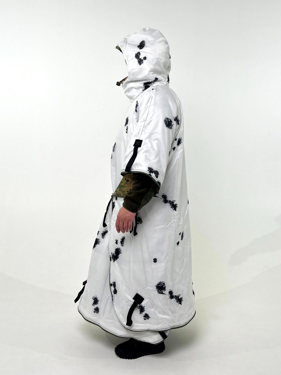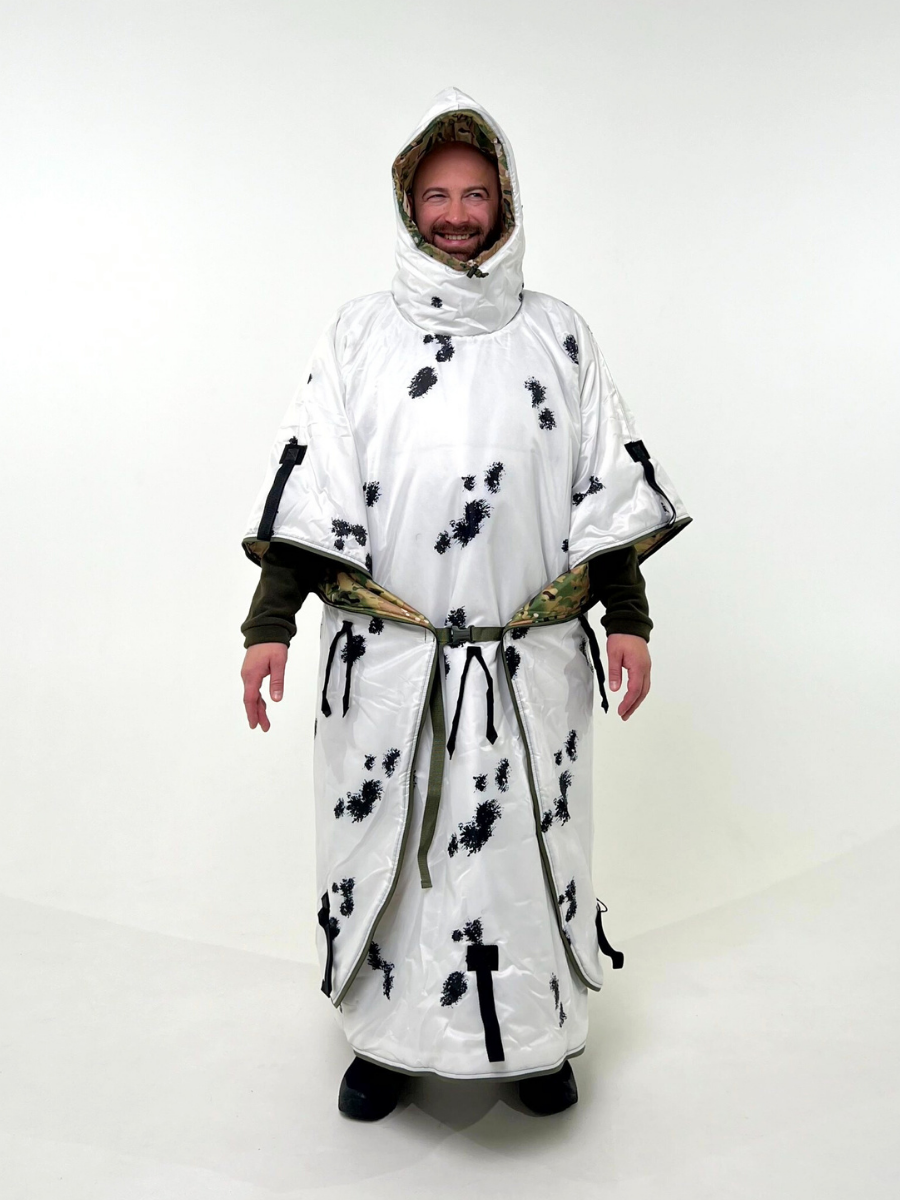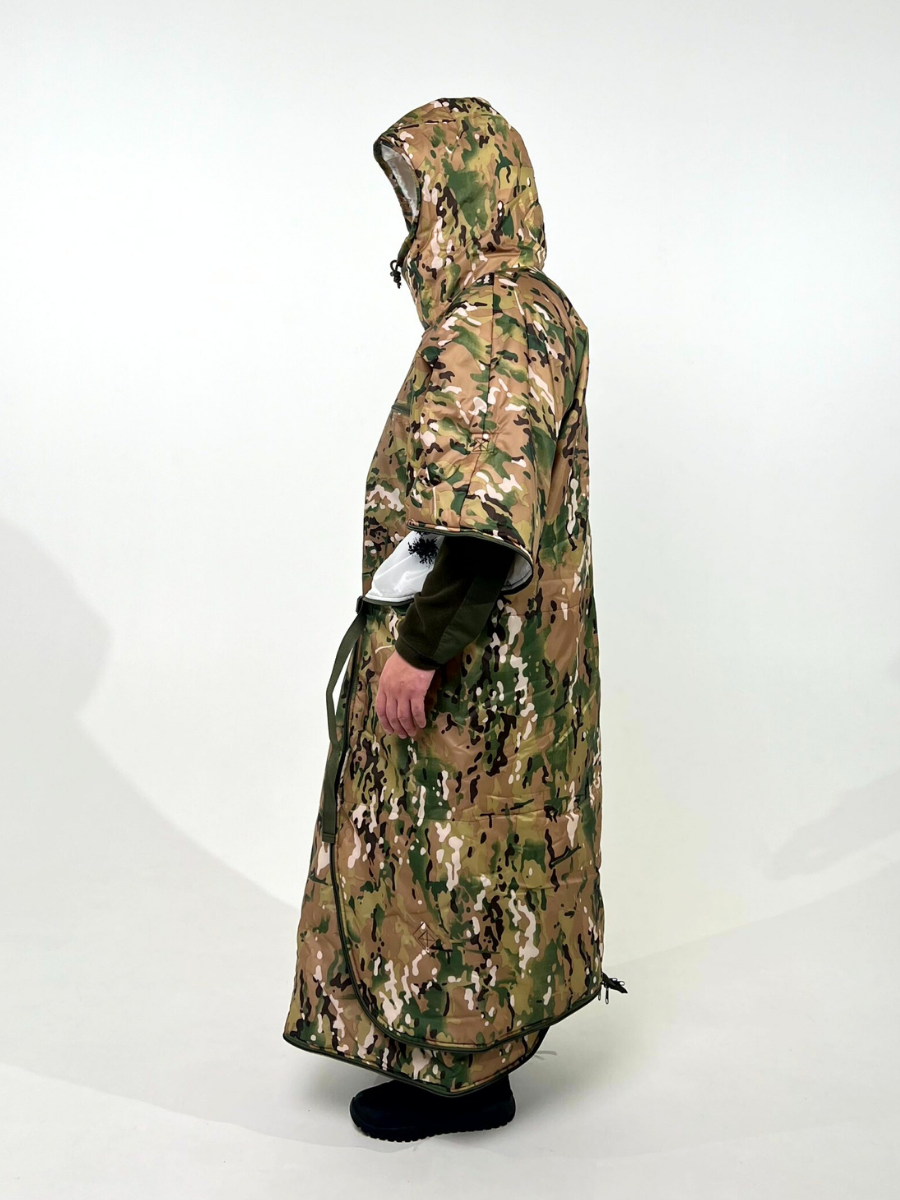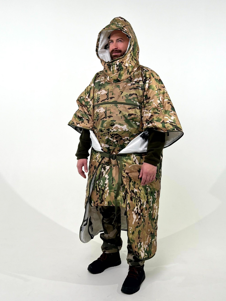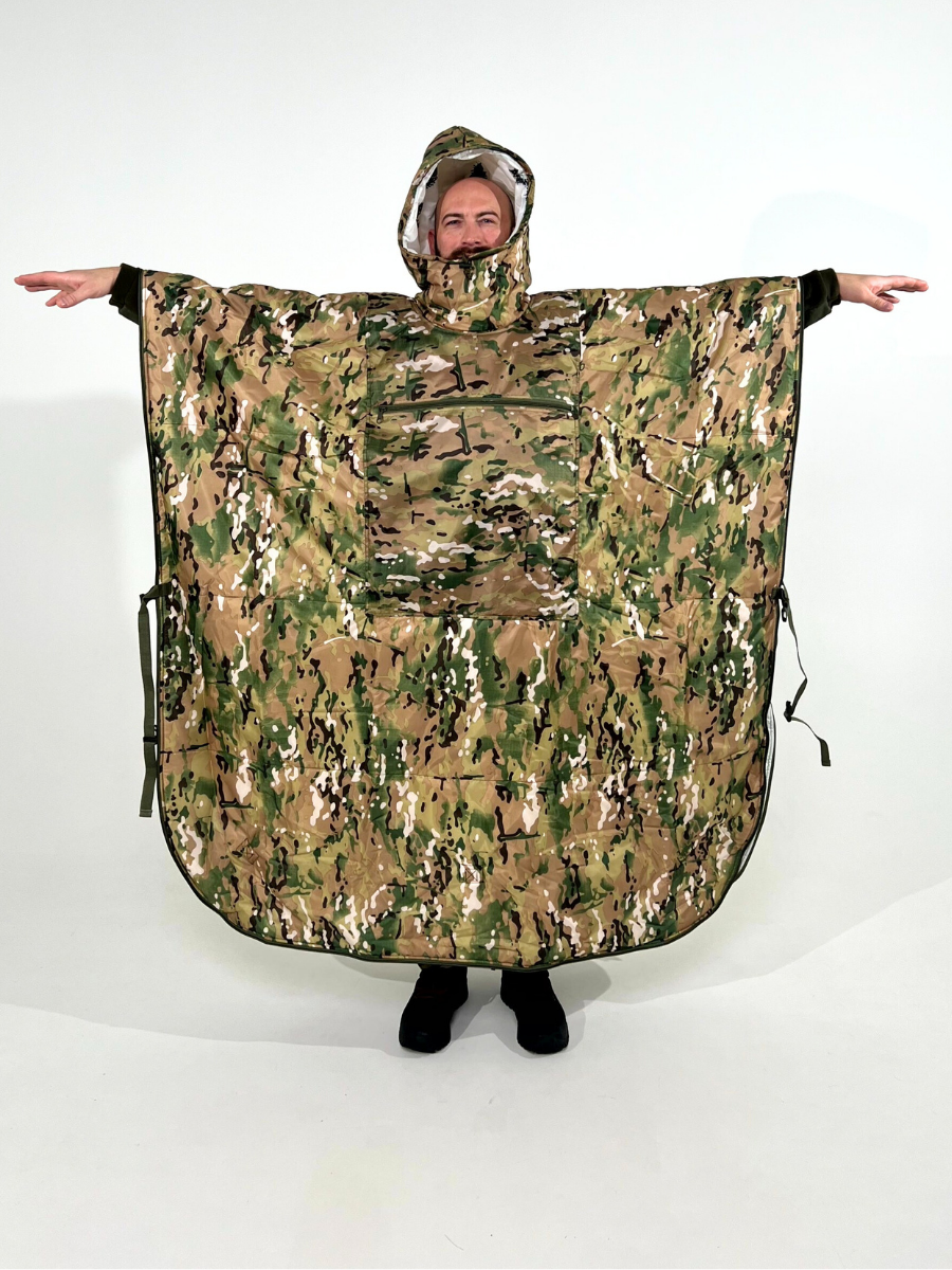 Это не просто пончо, а целый набор функциональных решений для туризма, охоты, рыбалки, выживания и повседневной жизни. Оно защитит вас от холода, дождя, ветра и солнца, а также поможет спрятаться от посторонних глаз или спасти раненного товарища.