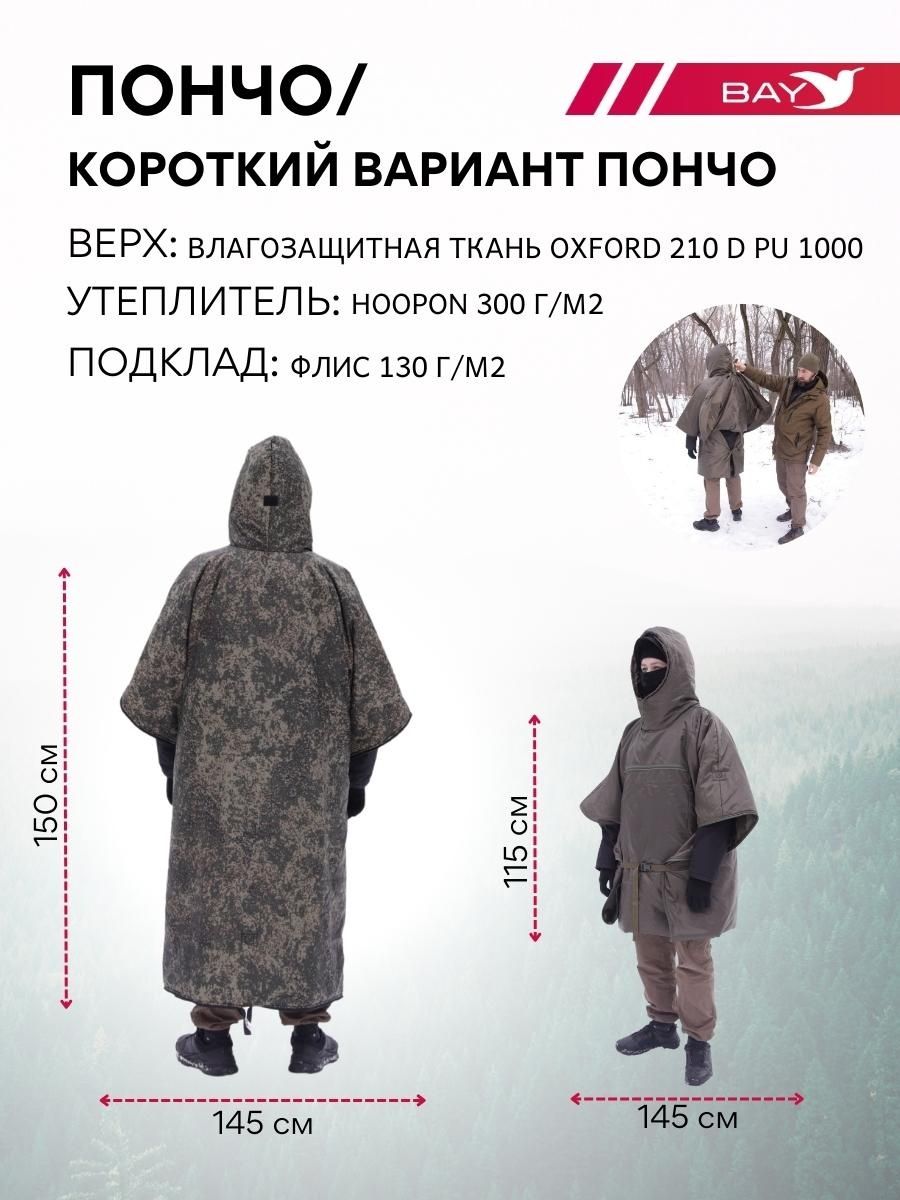 1. Пончо влагозащитный утепленный, длинный. Высота от плеч до низа 150 см