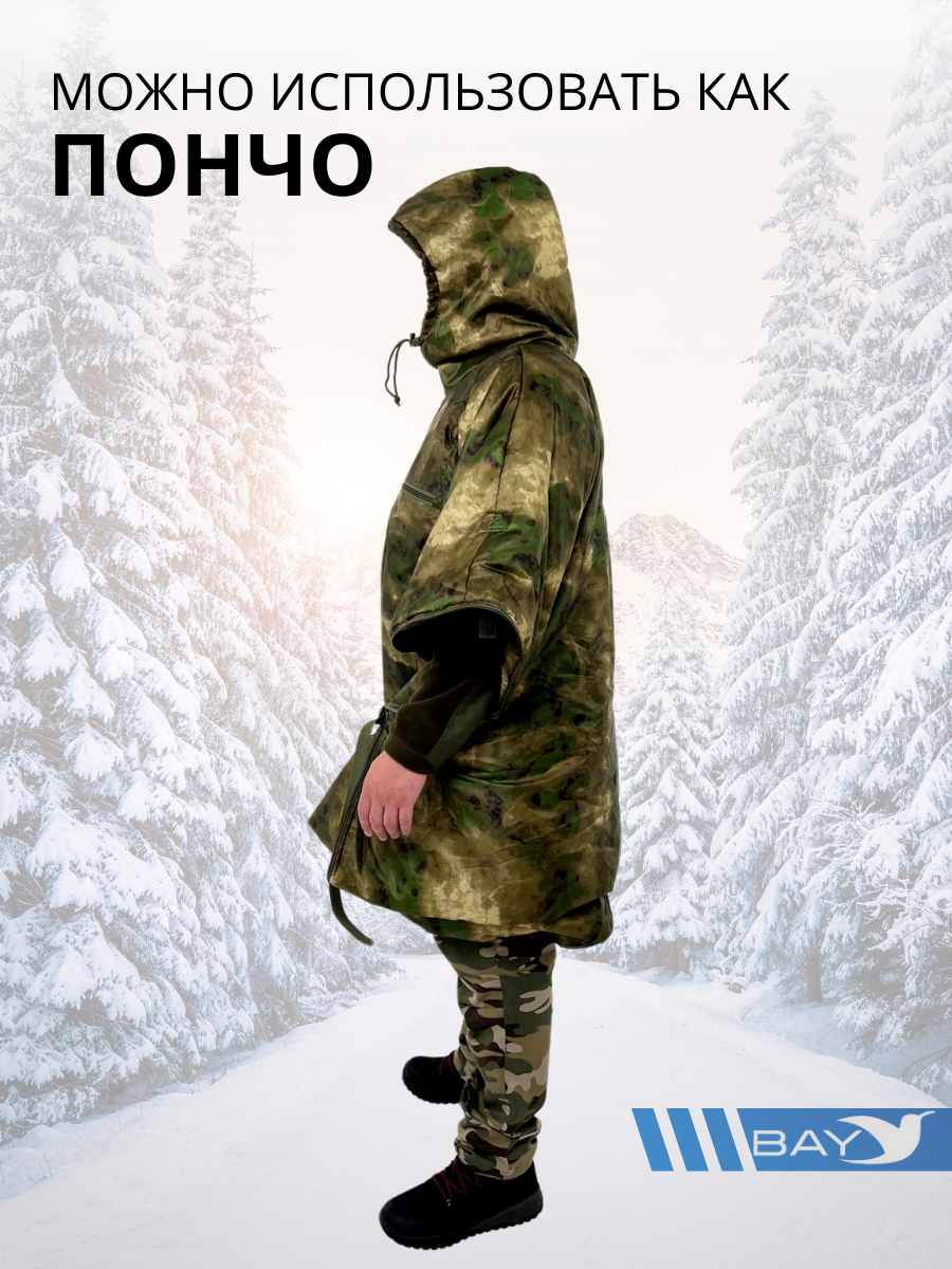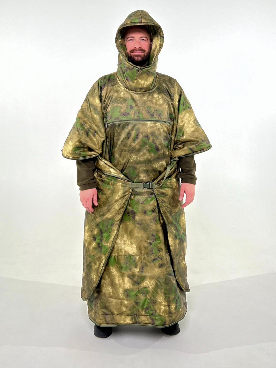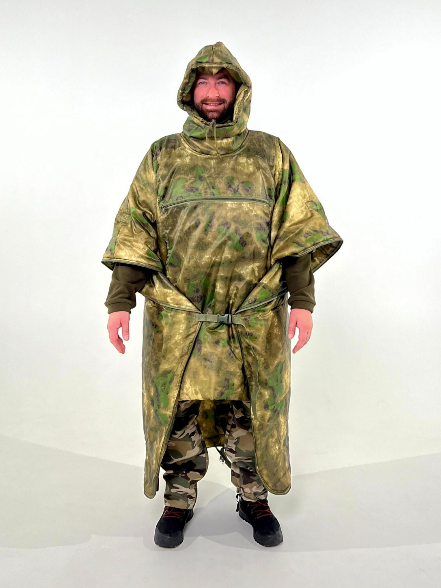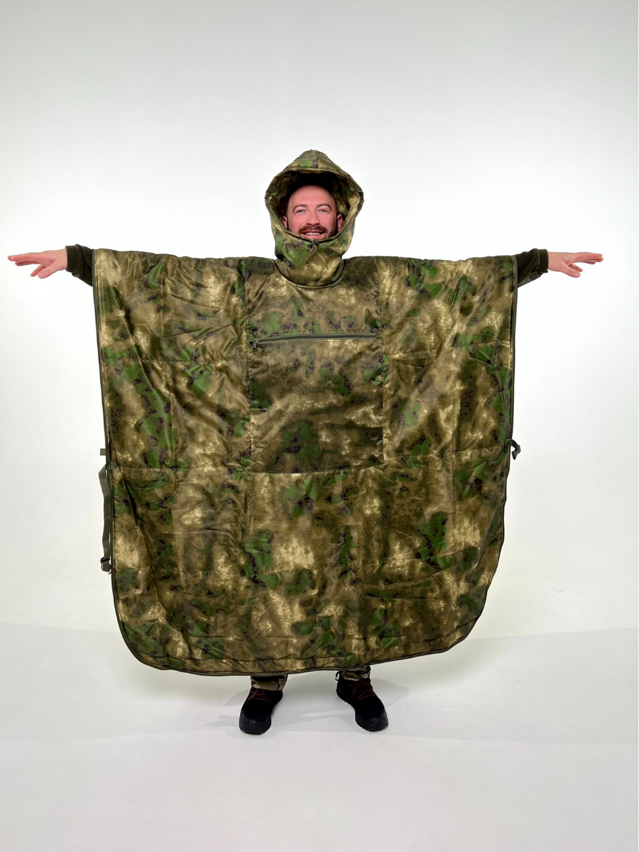 Это не просто пончо, а целый набор функциональных решений для туризма, охоты, рыбалки, выживания и повседневной жизни. Оно защитит вас от холода, дождя, ветра и солнца, а также поможет спрятаться от посторонних глаз или спасти раненного товарища.