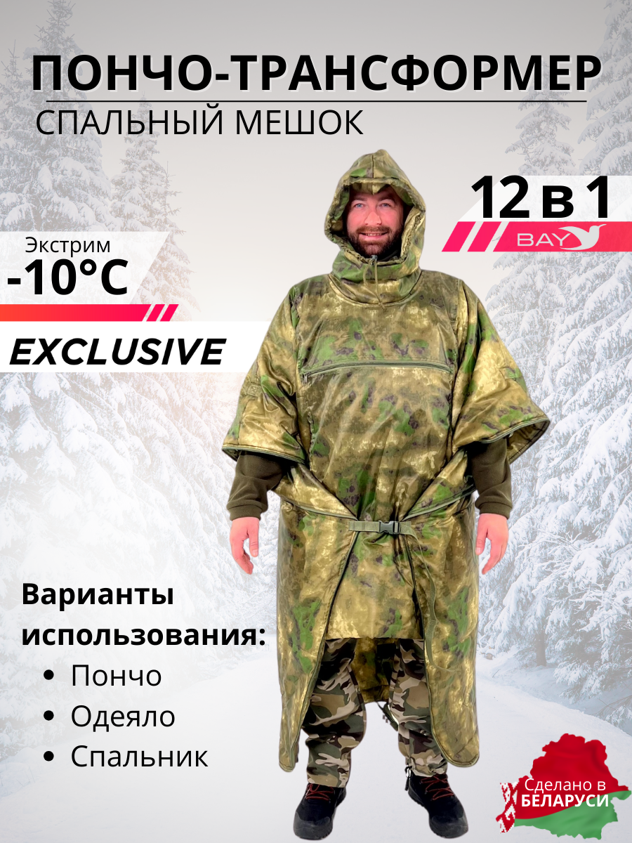 Пончо-трансформер 12 в 1 легко складывается и занимает мало места. Вы можете носить его как одежду, использовать как спальник, одеяло, мешок, подушку, навес, гамак, кокон, носилки или волокушу. Всего 12 вариантов использования в одном изделии!