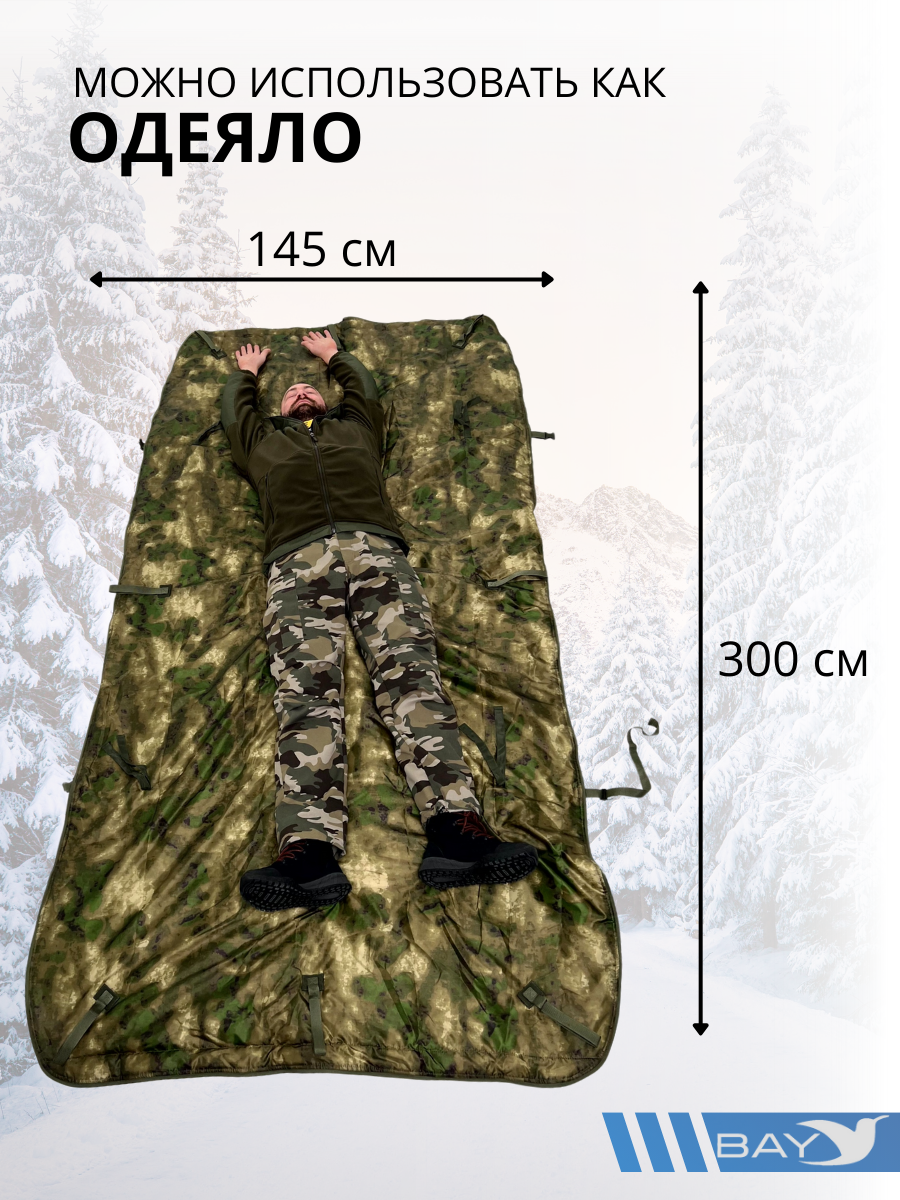 3. Спальник 300х75см, 2 бегунка на 2 стороны, закрывается как изнутри, так и снаружи.