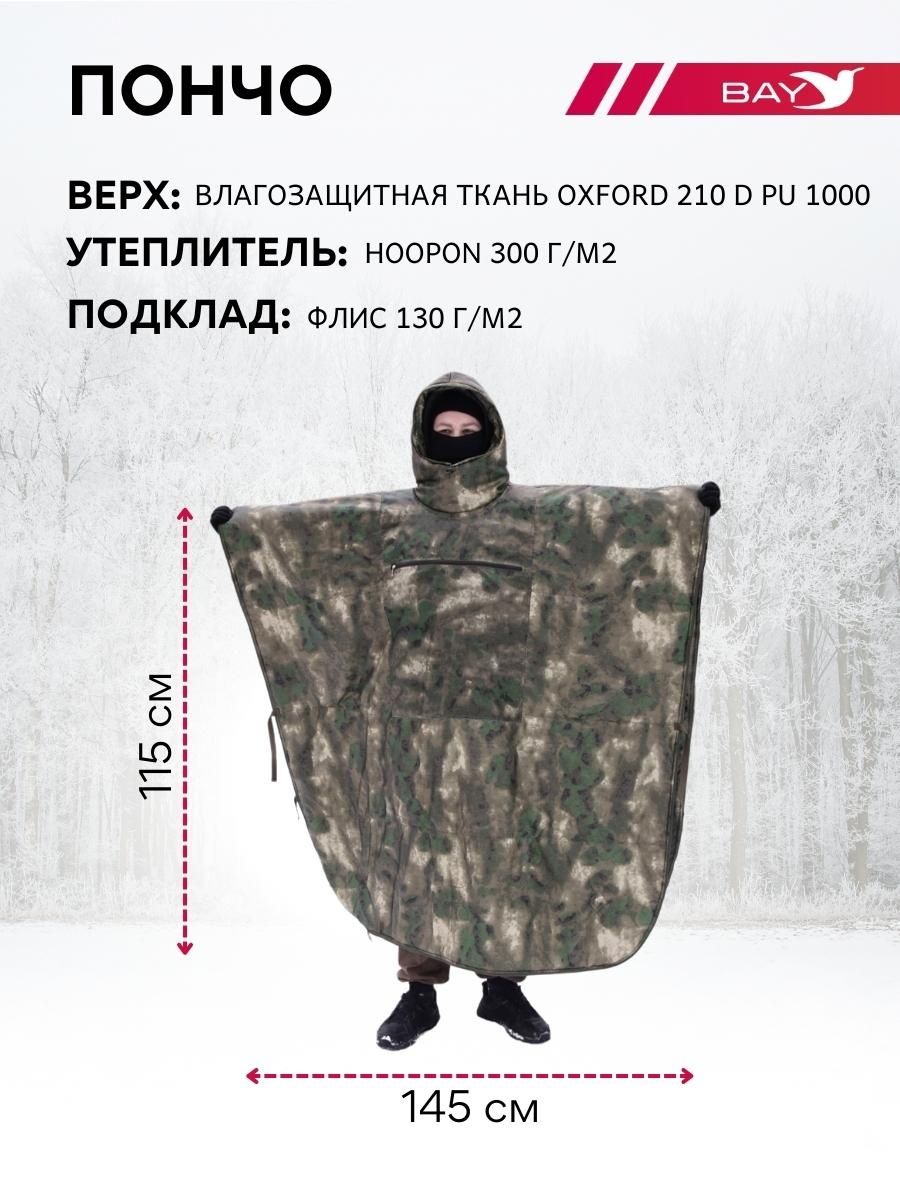 1. Пончо влагозащитный утепленный. Высота от плеч до низа изделия- 115 см. Ширина по плечам 145 см.