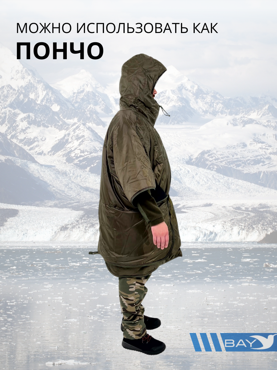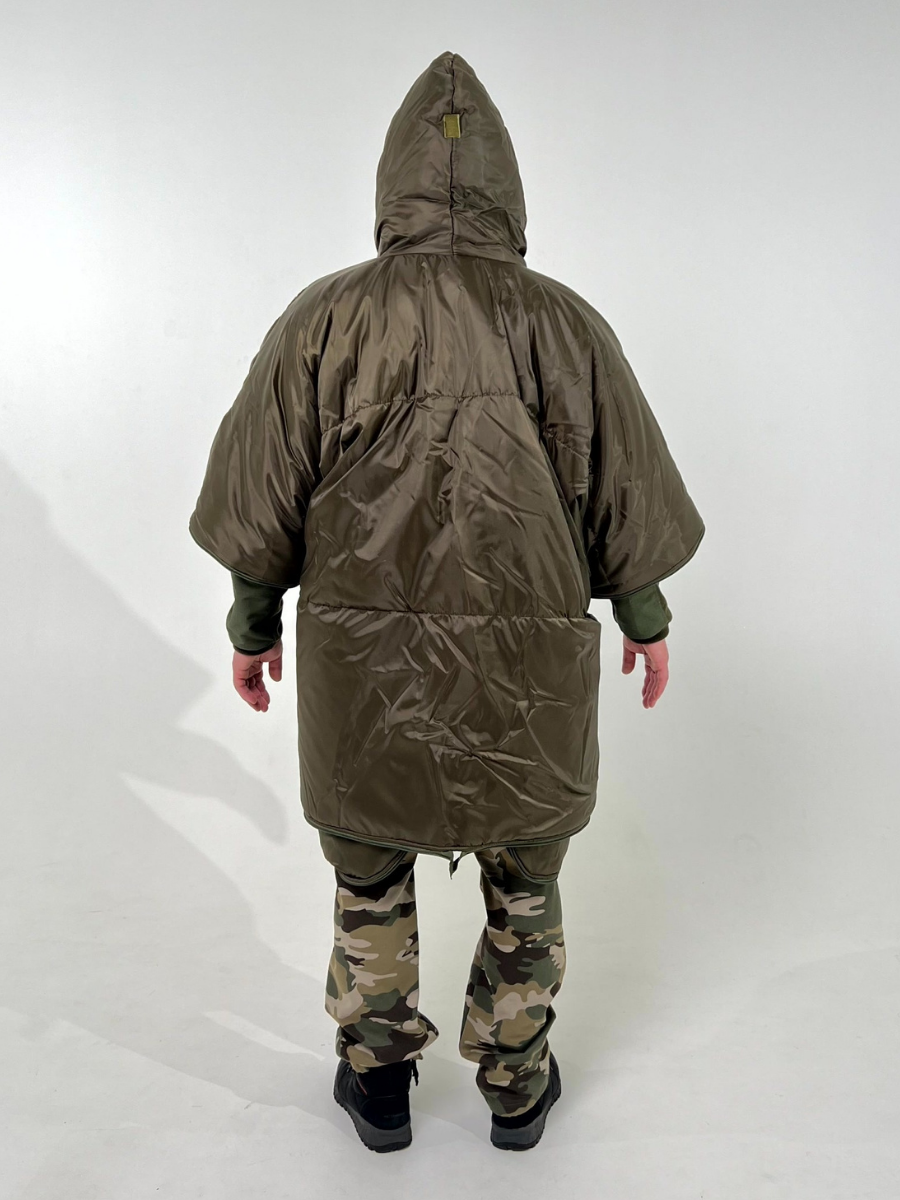 1. Пончо влагозащитный утепленный. Высота от плеч до низа изделия- 115 см. Ширина по плечам 145 см.