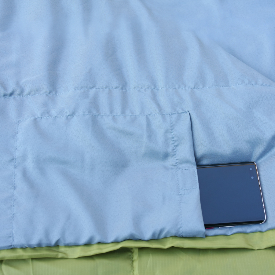Утяжка с фиксатором помогает стянуть капюшон и воротник для предотвращения потери тепла. Специальный язычок на липучке предотвращает самопроизвольное расстегивание спального мешка во время сна.