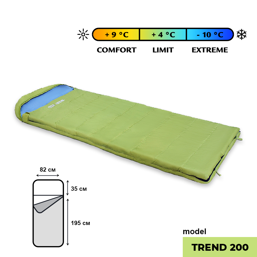 Спальный мешок GOLDEN SHARK Trend 200 изготавливается из прочной на разрыв, усиленной ткани 210T Poly RipStop W/R с защитой от УФ-излучения, которая обладает хорошими дышащими свойствами и имеет водоотталкивающее покрытие.