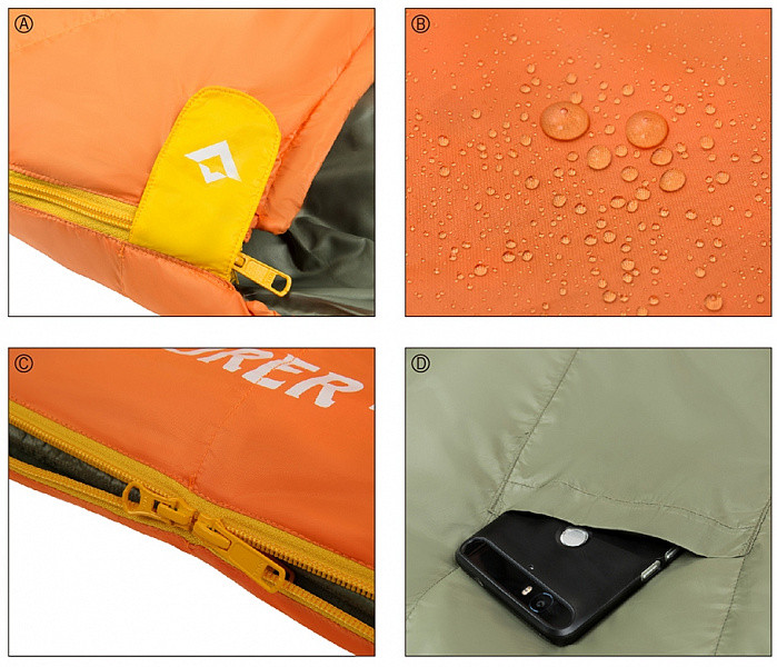 Пуховый трёхсезонный спальник-одеяло с подголовником. Назначение: туризм, кемпинг. Клапан на застежке – «молнии», реверсивная молния, утяжки - "велкро", термоворотник, внутренний карман для мелочей, компрессионный мешок для переноски из полиэстера Oxford 210D. Утеплитель: утиный пух 70%, утиное перо 30% 500 fP Ткань внутренняя: 100% полиэстер 50D Ткань внешняя: 100% полиэстер 50D.
