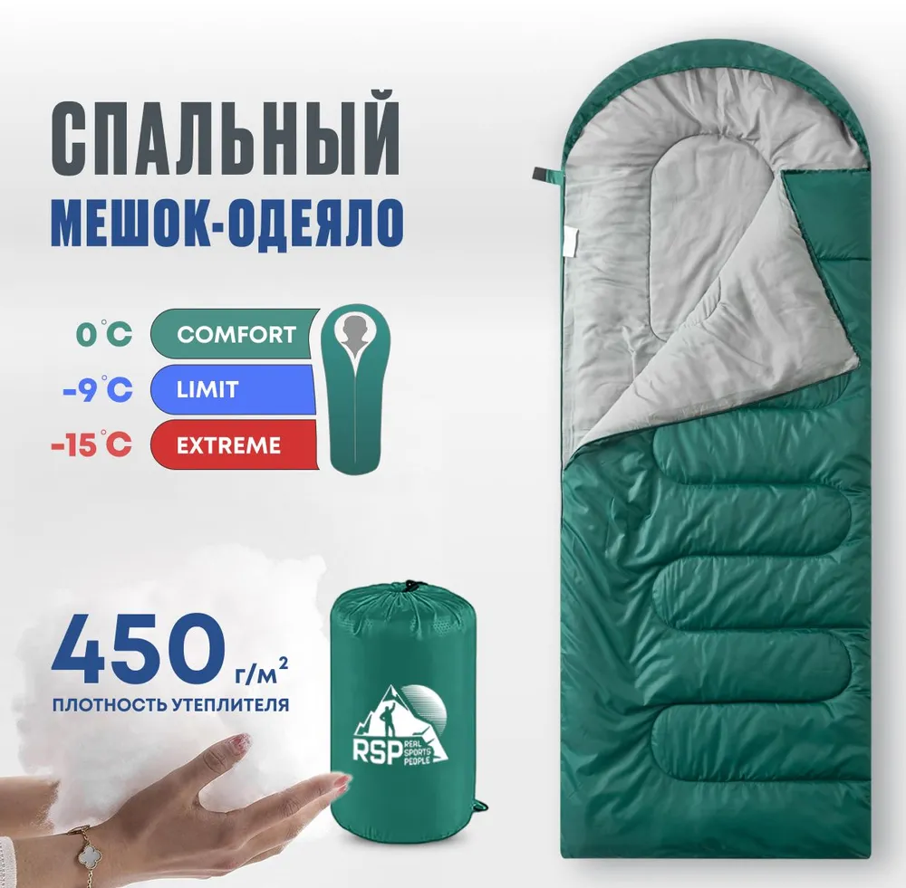 Спальный мешок RSP LAGER 450 зеленый, левая молния - это спальный мешок, предназначенный для использования в условиях умеренного климата. Он изготовлен из прочных и водонепроницаемых материалов, что обеспечивает ему долговечность и защиту от непогоды.