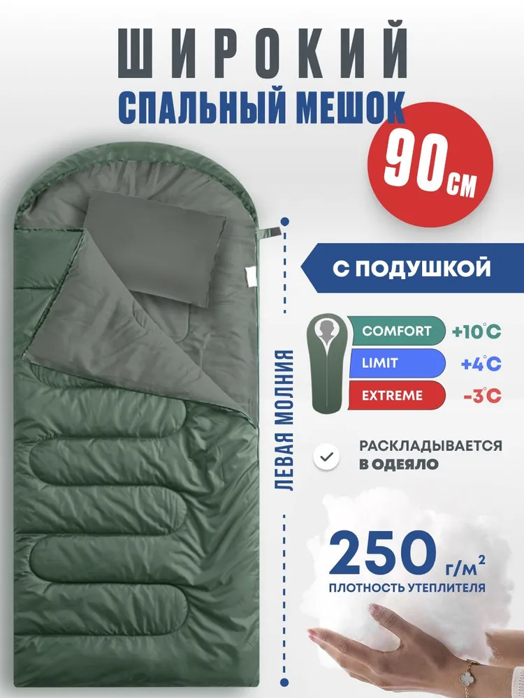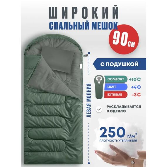 Спальный мешок RSP SLEEP 250 BIG зеленый, левая молния