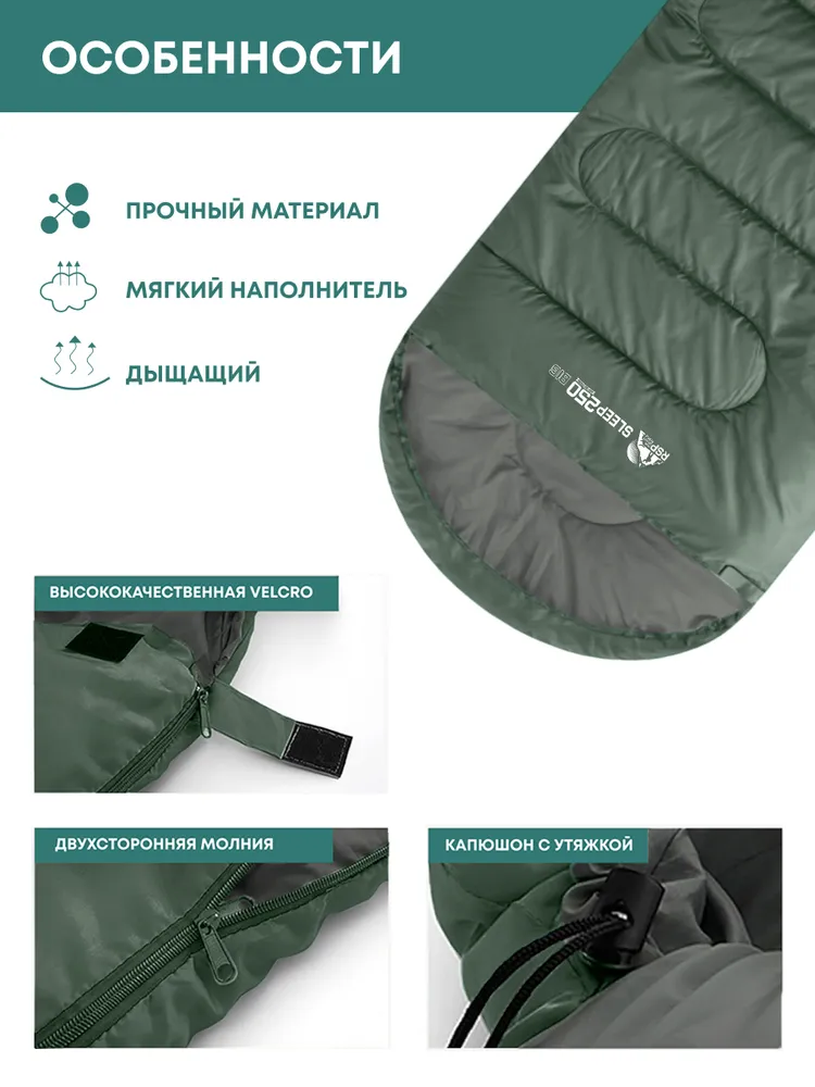 - Возможность состегивания двух спальников в один (ширина 180 см)