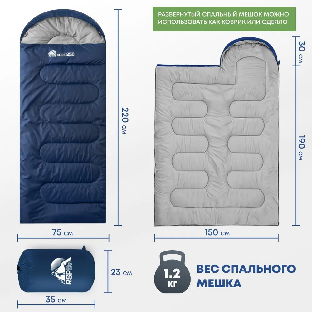 Спальный мешок RSP SLEEP 250 синий, левая молния