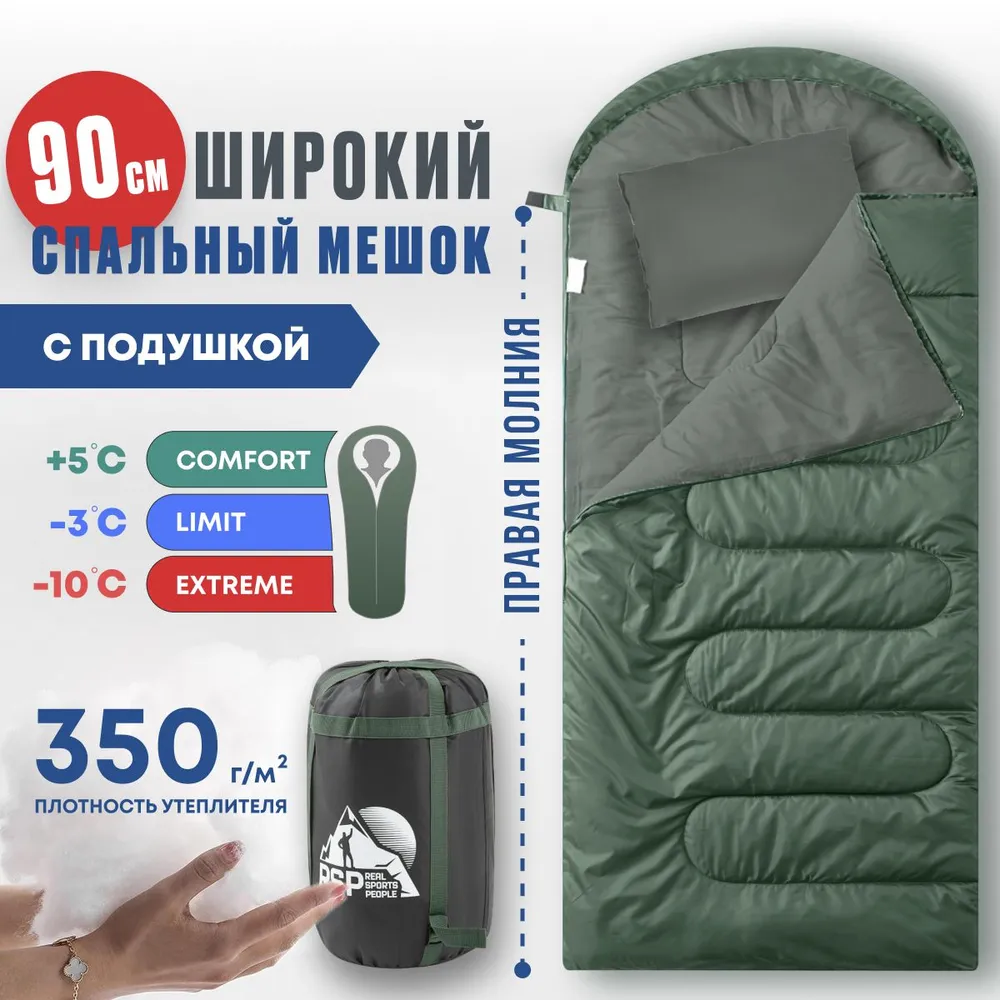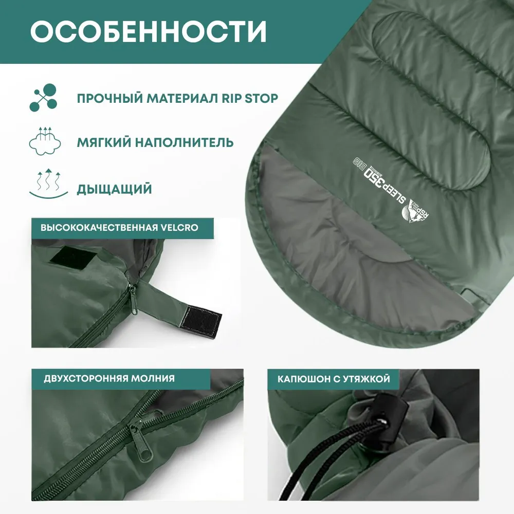 Спальный мешок RSP SLEEP 350 BIG зеленый, правая молния