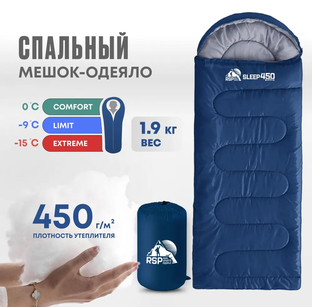 Спальный мешок RSP SLEEP 450 синий, левая молния