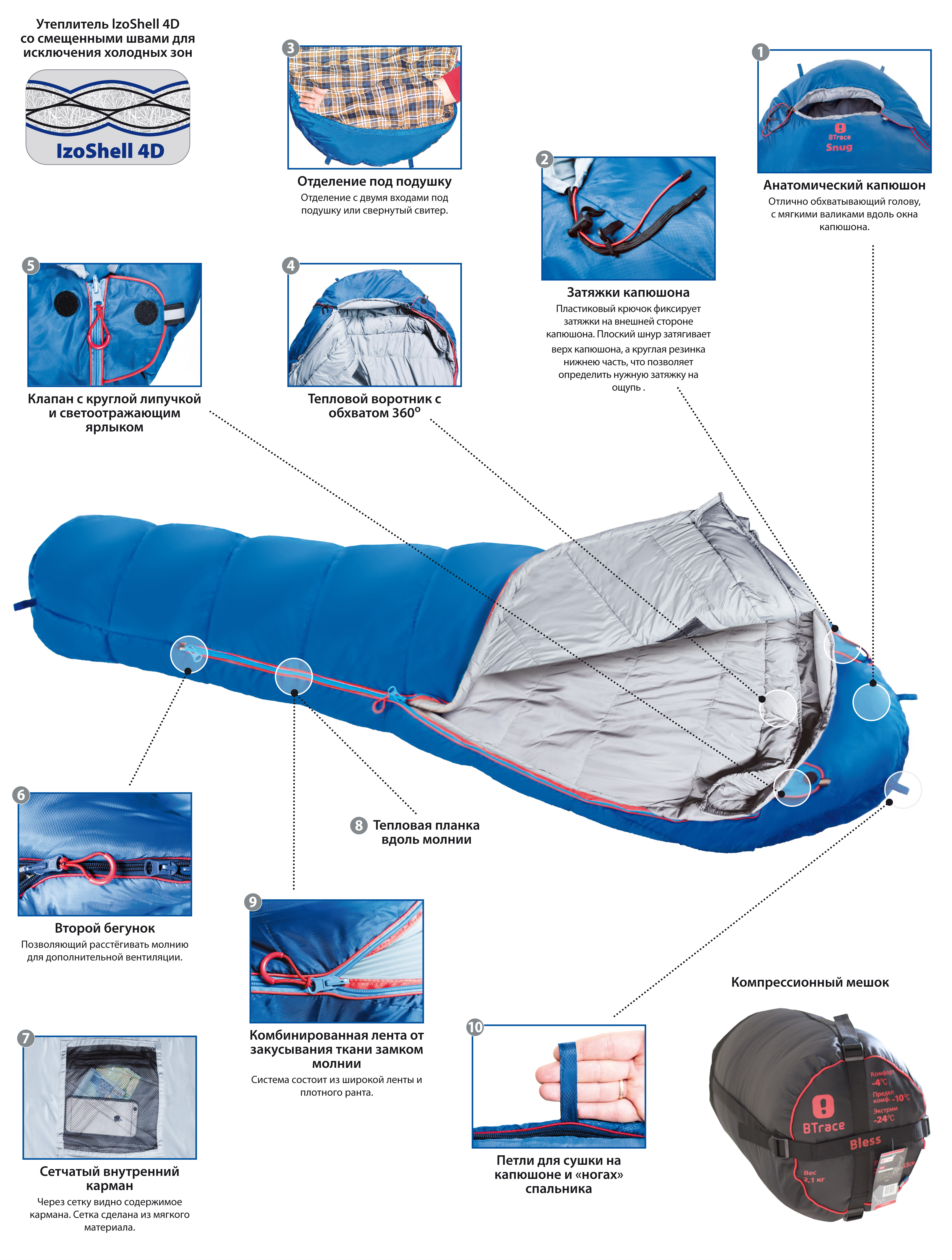 Низкий коэффициент теплопроводности, высокие гидрофобные и потребительские каче ства делают утеплитель lzoShell 4D одним из лучших утеплителей для спальных мешков.