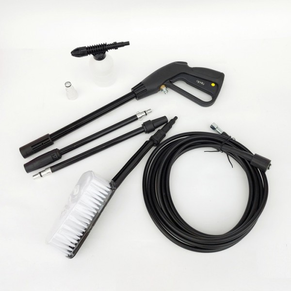 - Комплектация: пистолет высокого давления, шланг, удочка, насадки