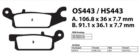 ТОРМОЗНЫЕ КОЛОДКИ ДЛЯ КВАДРОЦИКЛОВ YAMAHA (GRIZZLY 550, 700) RIVAL HS443