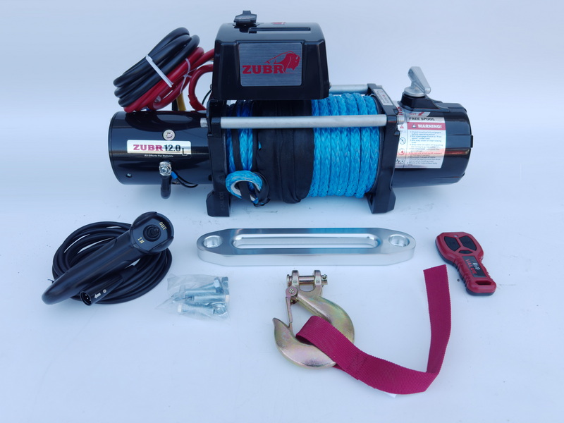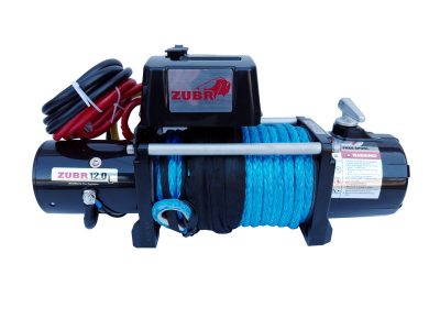 Лебедка ZUBR EWL12000S SR с синтетическим тросом. Тяговое усилие 12000 lbs (~5443 кг), лёгкий и прочный трос для удобства эксплуатации и установки.