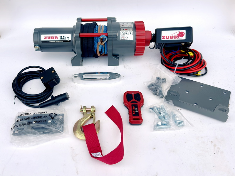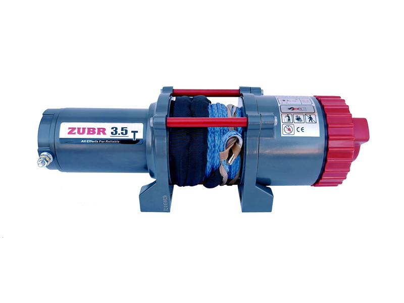 Электрическая лебедка ZUBR EWT3500A SR с синтетическим тросом обеспечивает тяговое усилие 3500 lbs (~1587 кг) при малом весе и удобстве эксплуатации.