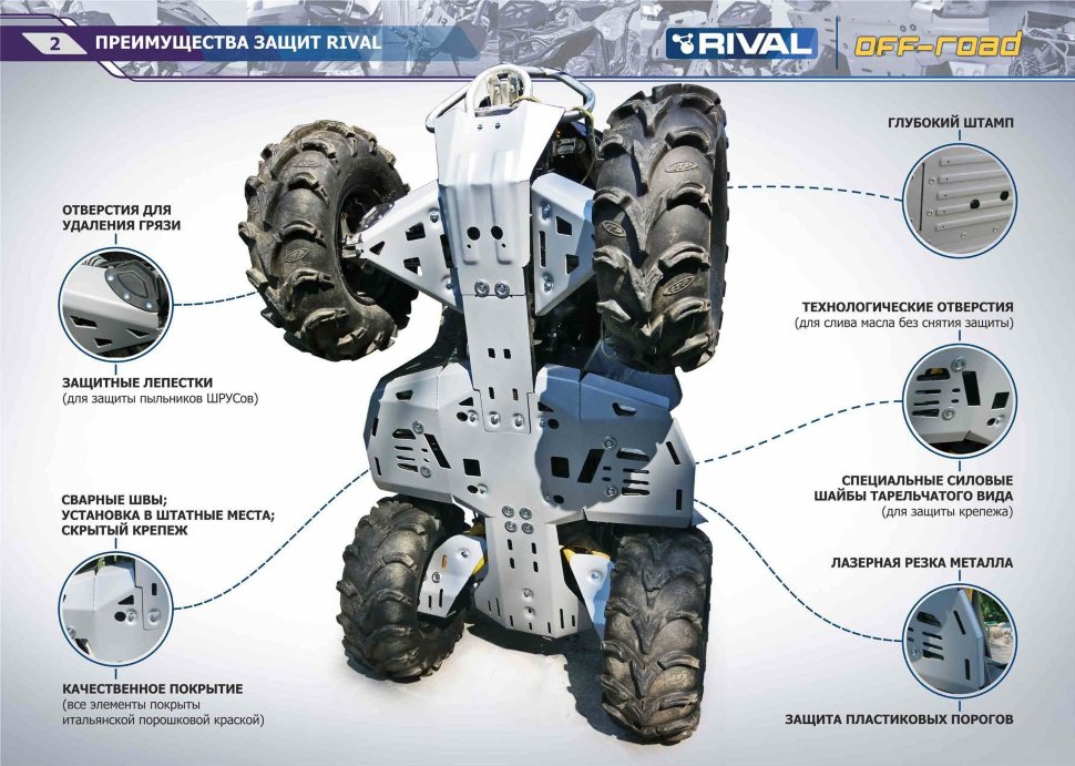 Полный комплект защиты днища 4 мм Rival/Ривал для квадроцикла Baltmotors Jumbo 700 max