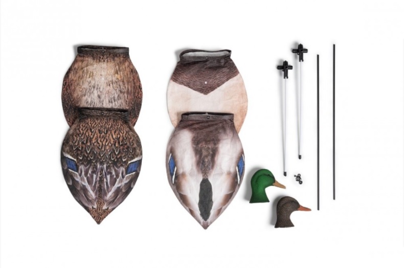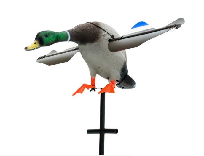 Что касается чучел-флюгеров уток для охоты, то можно с гордостью сказать , что эти приманки создают действительно реалистичную имитацию стаи уток во время прикорма. Чучело утки изготавливается из прочного, но легкого экологического материала Tyvek. Этот нетканный материал устойчив к воде, физическим воздействиям и обладает отличной воздухопроницаемостью. Голова и шея выполнены из полимерного материала EVA, максимально реалистично повторяющего текстуру перьев уток. Чучела выполнены в виде флюгера и устанавливаются на специальный штатив из стеклопластика высотой 60 см, что позволяет устанавливать чучела даже на мелководье в водоеме. Приманки сохраняют своё горизонтальное положение и объём даже в условиях полного штиля, а небольшой ветер способен привести флюгер утки в небольшое движение, ввиду чего имитация становится еще более реалистичной и живой.