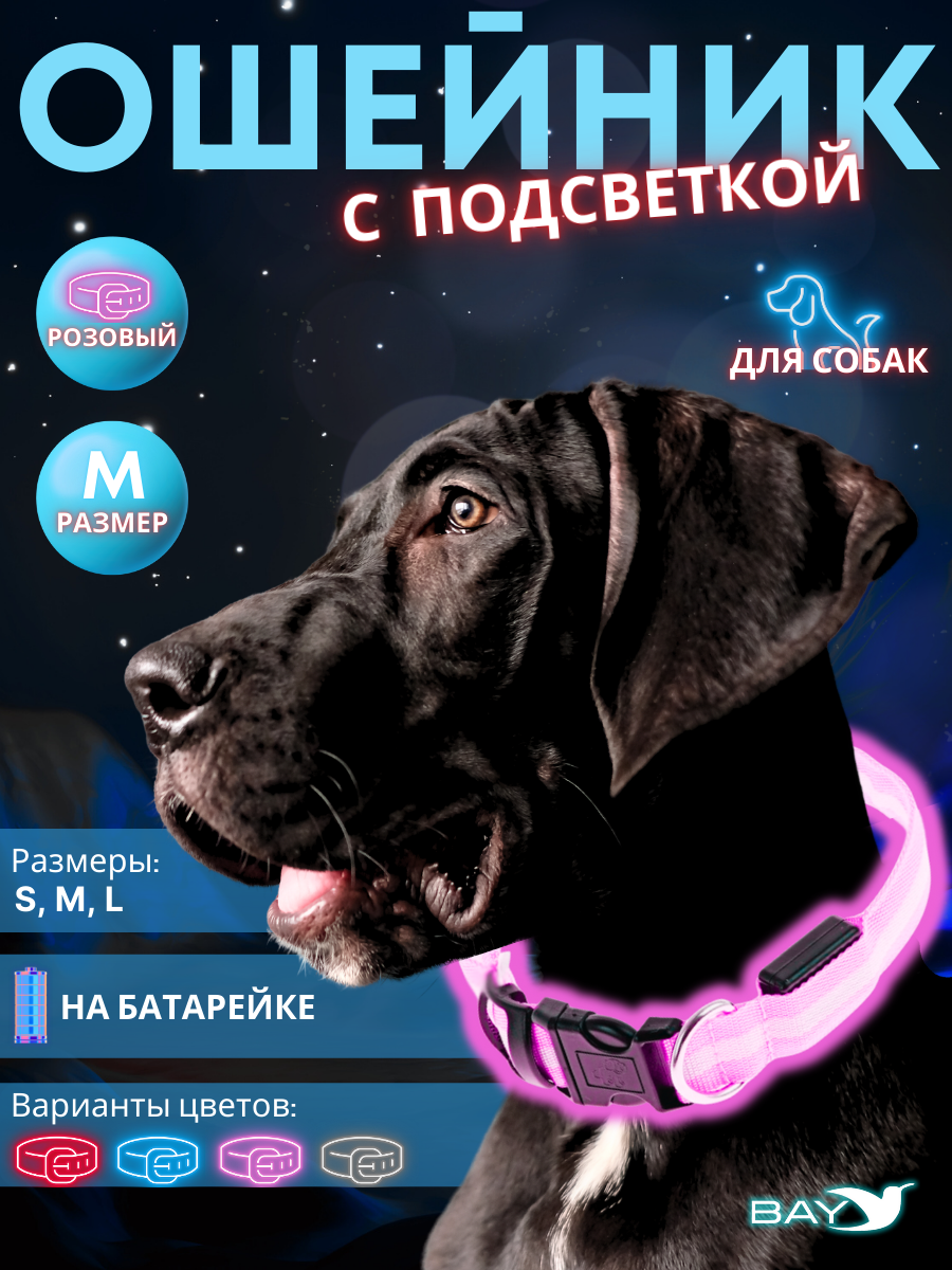 Ошейник с подсветкой для собаки, размер M, розовый