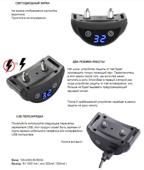- - 5 уровней настройки чувствительности микрофона (на лай, вой или скулеж);