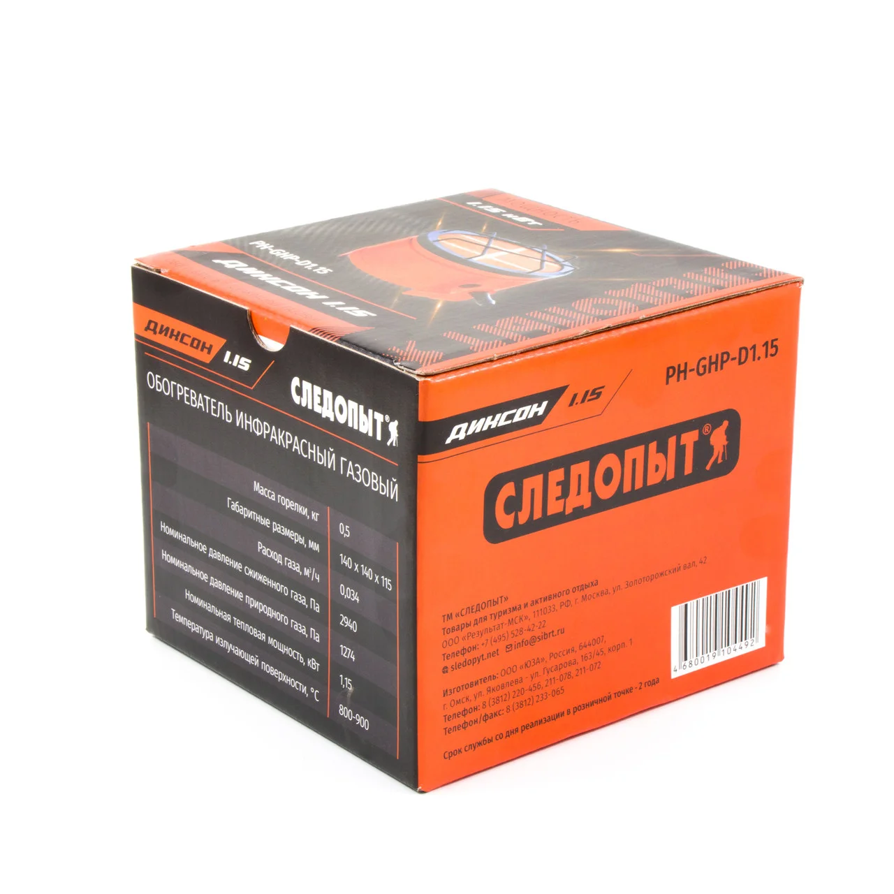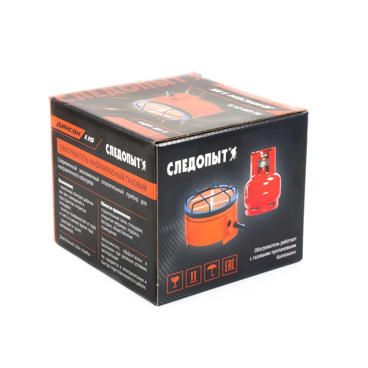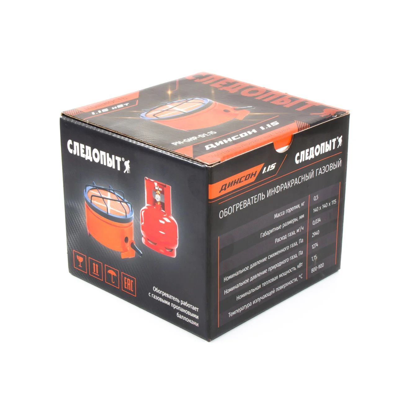 Обогреватель (плита) газовый инфракрасный СЛЕДОПЫТ ДИКСОН 1,15 кВт / PH-GHP-D1,15 Современный экономичный отопительный прибор для направленного обогрева. Локальный обогрев рабочих зон вне помещений и пространства открытых площадок. Экономичен, эффективен и безопасен при должных условиях эксплуатации. Обогреватель работает с газовыми пропановыми баллонами. Номинальное давление сжиженного газа - 2940 Па, Номинальное давление природного газа - 1274 Па, Температура излучающей поверхности - 800-900 оС, Содержание окиси углерода в продуктах сгорания - не более 0,02%. Сфера применения и особенности товара: - предназначен для использования в быту, в капитальных или временных жилых строениях, на удаленных объектах, где нет возможности подключения к централизованным сетям жизнеобеспечения, в дачных, охотничьих домиках, на плав.средствах и т.п. - предназначен для использования на кемпинге, рассчитан на использование в палаточных лагерях, с возможностью приготовления пищи на большие группы людей. - предназначен для охотников, егерей. Возможно использование в местах стоянки, в охотничьих домиках. - предназначен для людей, увлекающихся рыбалкой (летняя, зимняя). Возможно использование на плав.средствах, в зимних палатках. Установка баллона ГОРИЗОНТАЛЬНО. Не допускается установка под углом! Характеристики: Мощность горелки (газовое топливо): 1,15 кВт Расход газа: 0,034 м3./час Размеры в походном положении: 140 х 115 мм Тип горелки: закрытая, с керамической поверхностью Особенности: диаметр отверстия сопла (сжиженный газ) - 0,45