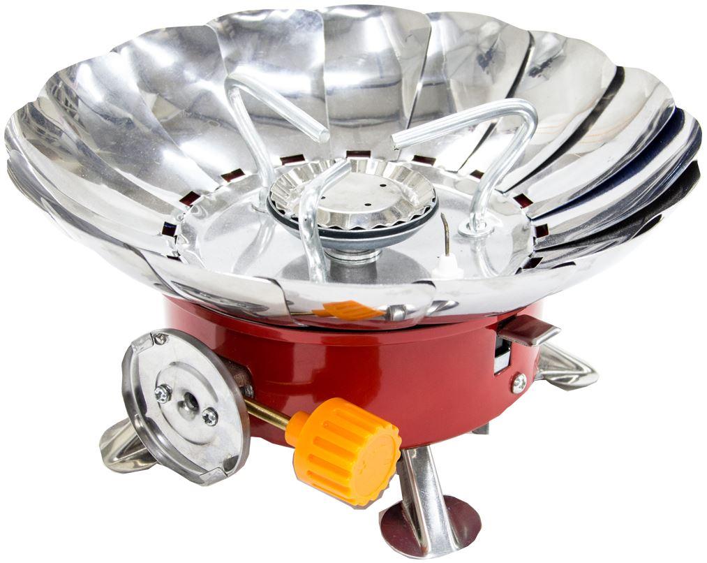 Миниатюрная газовая плита-трансформер с лепестками для ветрозащиты, в сложенном виде, занимает совсем мало места, максимальная экономия места обеспечивается за счет складных элементов. Ножки плитки и подставка для посуды эргономично укладывается вплотную к друг другу, ветрозащита выполнена в виде лепестков, позволяет готовить даже при сильном ветре. Экономичная, ветрозащита из нержавеющей стали. Имеется пъезоподжиг, подходит газовый баллон международного стандарта (в комплекте отсутствует).