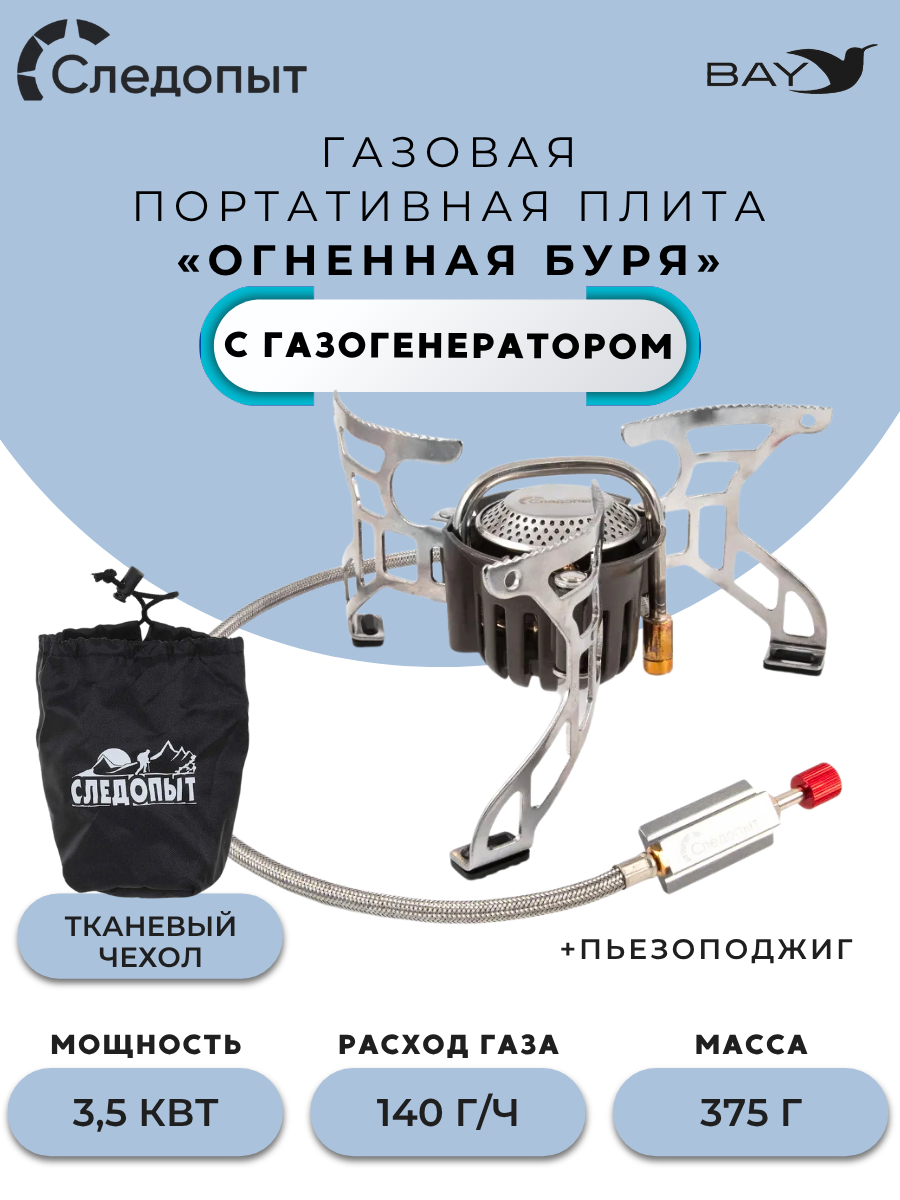 Плита порт. газовая СЛЕДОПЫТ "Огненная буря" (с газогенератором)