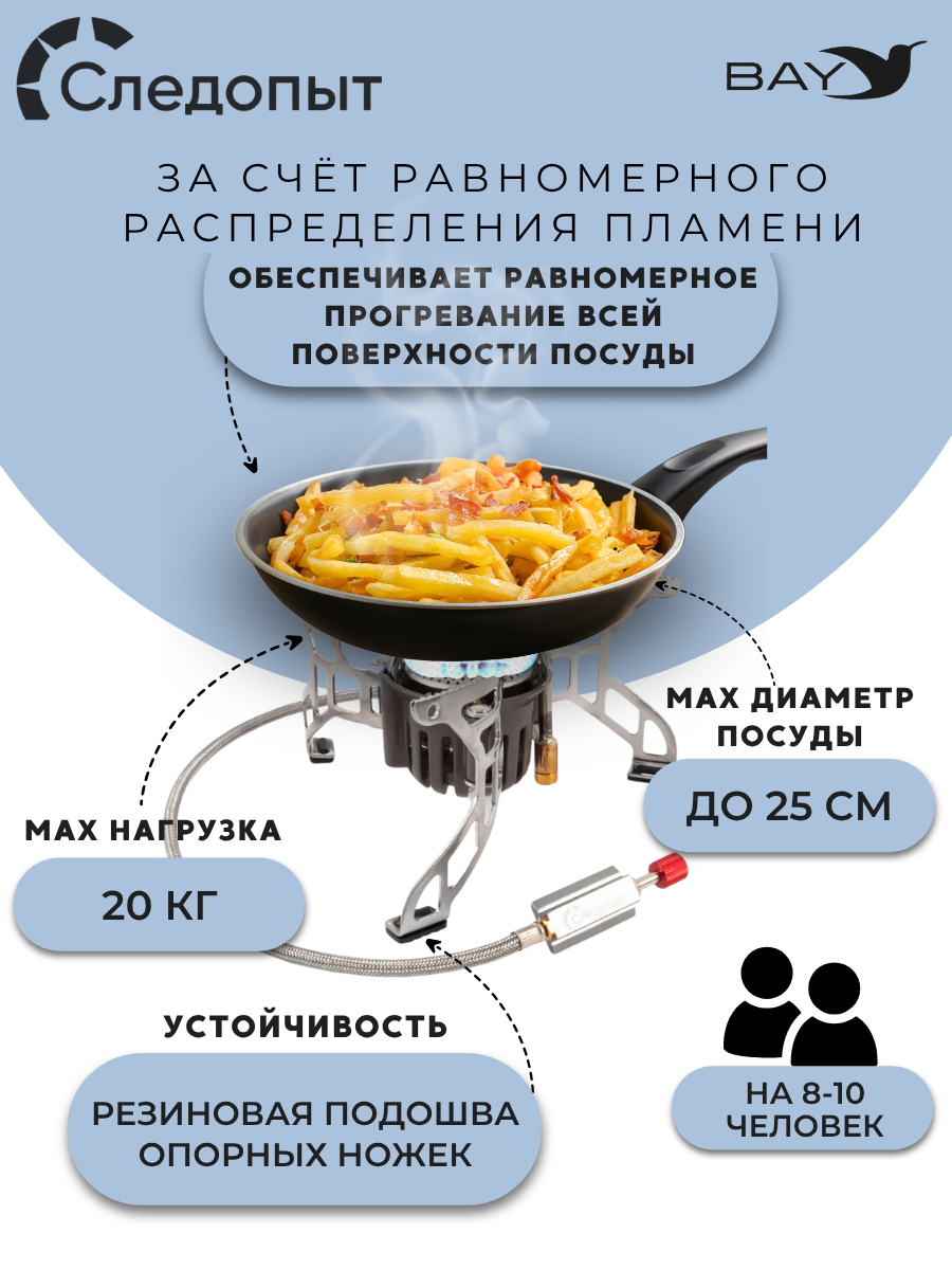 Портативная газовая плита "Огненная буря" PF-GSP-H06 от бренда СЛЕДОПЫТ - это профессиональное решение для приготовления пищи в походных условиях. Благодаря уникальной системе газогенератора плита демонстрирует стабильную работу даже при экстремально низких температурах.