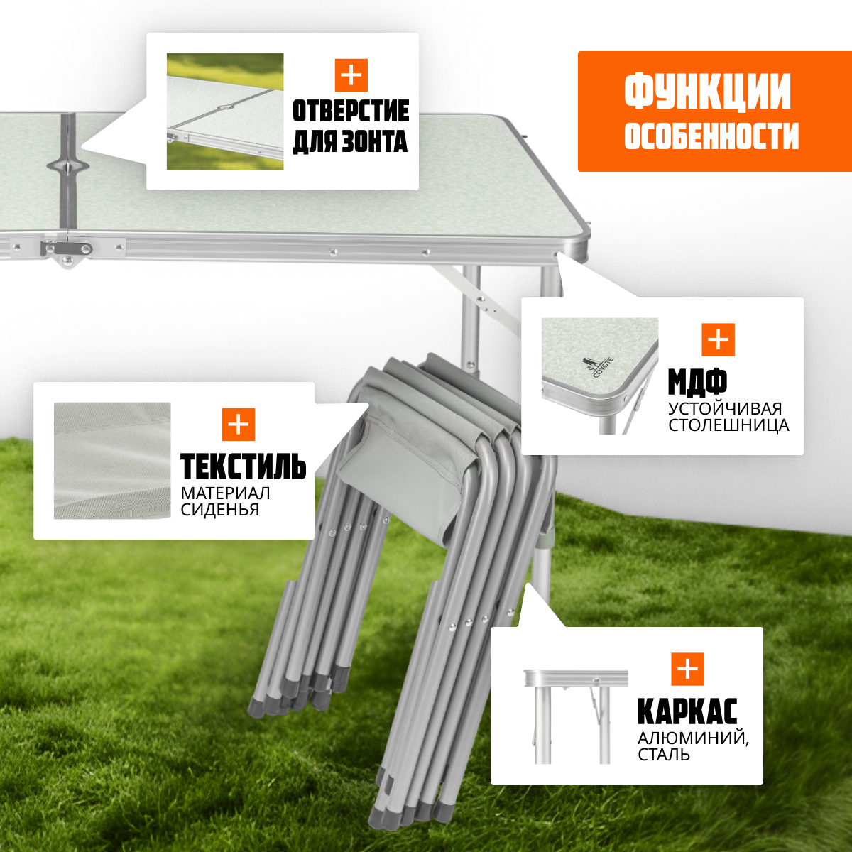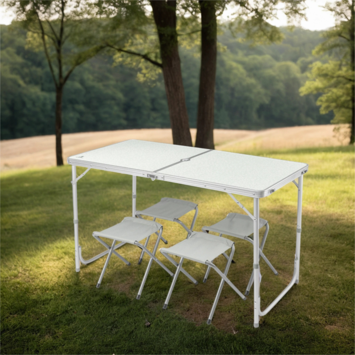 - Складная конструкция стола и табуретов для легкой транспортировки и хранения.