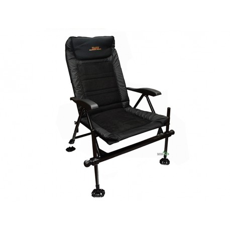 Traper Comfort Feeder Chair 81273 - качественное комфортабельное кресло, рекомендуемое как для ловли рыбы с дамбы, так и для типичных береговых условий рыбалки. Имеет прочный металлический каркас, удобные подлокотники, поверхность из износостойкого полиэстера с мягкой вставкой.