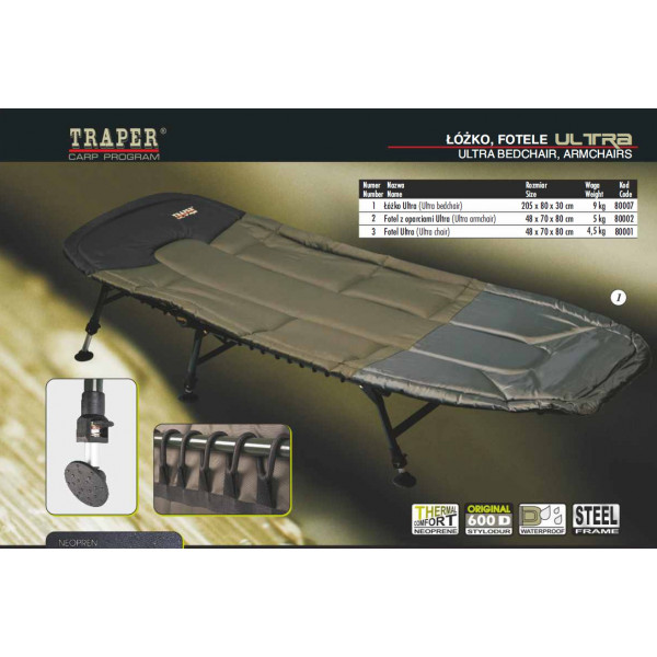 Превосходная кровать для взыскательных карпятников. Регулирующиеся по высоте ножки позволяют установить её на неровной поверхности. Предусмотрена возможность изменения угла наклона спинки. Отличный вариант для спортивной ловли карпа!