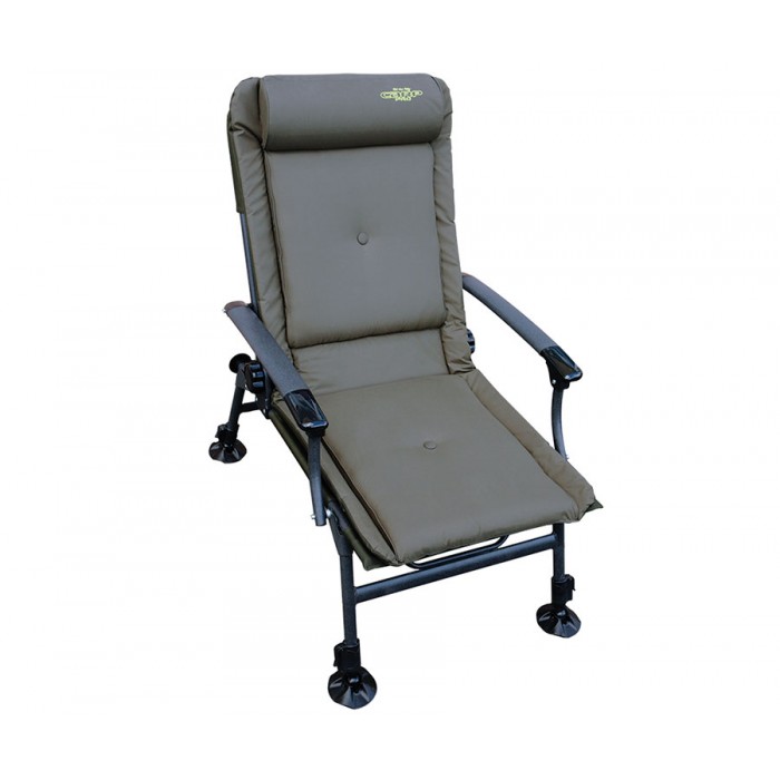 Кресло высокого класса Carp Pro Комфорт для карповой ловли. Благодаря мощной стальной раме и качественному исполнению способно выдерживать рыболовов большого веса. Ноги имеют телескопическую конструкцию, что позволяет располагать кресло на неровной поверхности. Мощные поворотные пятки увеличенного размера не дают креслу проваливаться в мягкий грунт. Сиденье и спинка имеют плотную набивку, coздавая высокий уровень комфорта. Сетчатая спинка обеспечивает свободную циркуляцию воздуха. Угол ее наклона регулируется и фиксируется с помощью подлокотников, что позволяет производить регулировку, не вставая с кресла. Благодаря усиленным защитным креплениям кресло Carp Pro Комфорт, даже при полной нагрузке, не сложится на сгибах конструкции. Кресло кыдерживает нагрузку до 130 кг.