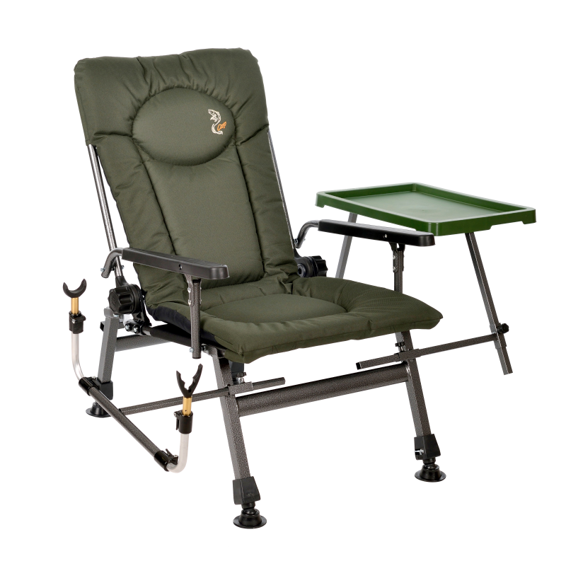 Рыбацкое кресло Elektrostatyk F5R ST/P – рыболовное карповое складное кресло-трансформер. Разработано, как усовершенствованный вариант модели Elektrostatyk F5R. Оно дополнительно комплектуется держателем для удочки и откидным столиком на подлокотнике.