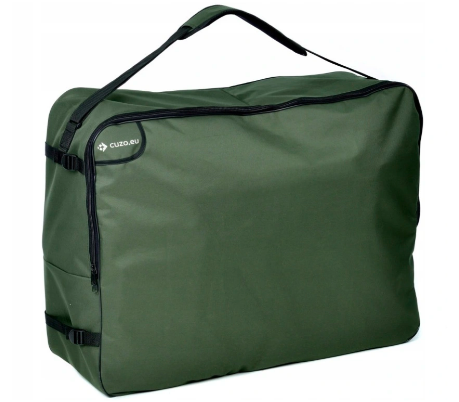 Чехол предназначен для транспортировки и хранения рыболовных кресел со специальной подставкой для ног или платформой. CUZO F2, CUZO F3 , F5R, F5R ST/P, FK2, FK5, FK6, FK7. Сумка изготовлена из прочной полиэфирной ткани, которую легко содержать в чистоте. Еще одним преимуществом продукта является водостойкость и устойчивость к случайным загрязнениям. Конструкцию легко транспортировать с помощью плечевого ремня с мягкой подкладкой , что повышает комфорт при переносе. Боковые регулировки позволяют подогнать чехол под данную модель кресла так, чтобы содержимое не перемещалось. Все это закрывается на молнию типа 10.