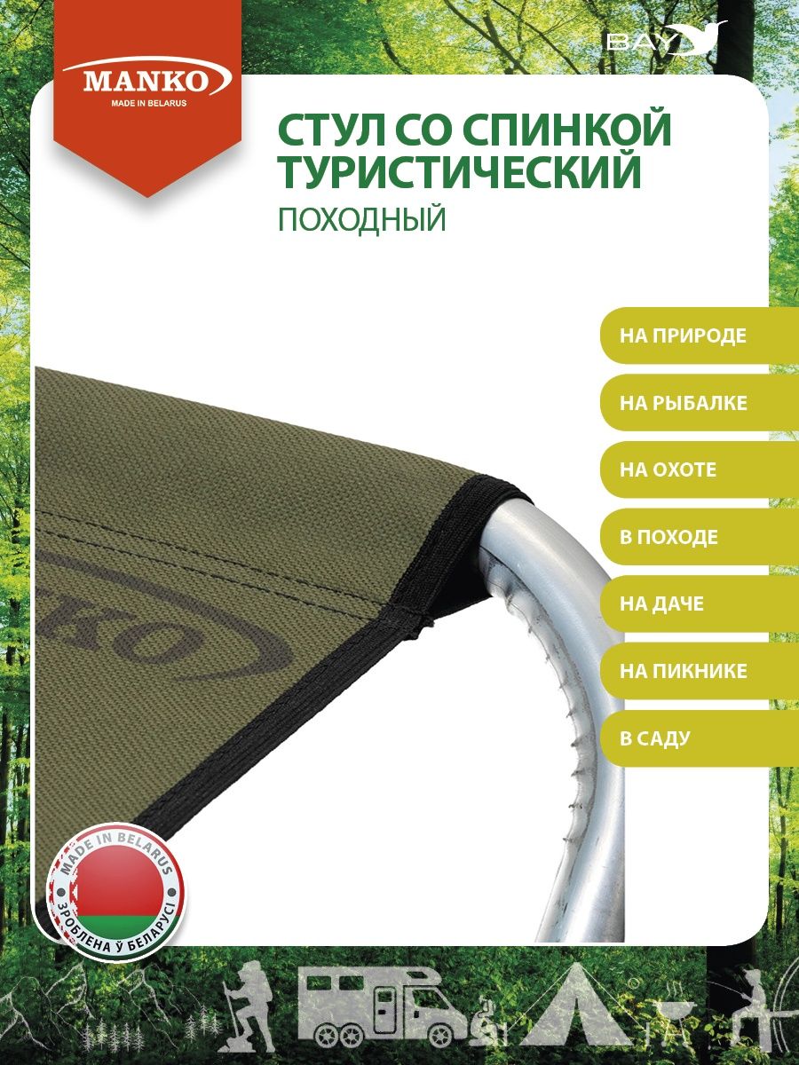 Стул со спинкой туристический складной от компании MANKO! Стул складной туристический отлично подходит для использования на рыбалке, охоте, пикнике, в туристическом лагере, дома, в подвале, гараже, квартире и также прекрасно подходит в качестве дачной мебели. Конструкция стула туристического складного позволяет компактно упаковать его для транспортировки. Каркас кресла изготовлен из аллюминия трубки диаметром 22 мм. Также стул складной туристический подходит для рыбалки, кресло садовое, кресло для отдыха, кресло раскладное, кресло шезлонг, рыболовный стул, кресло складное, кресло карповое, стул складной для рыбалки, стул для отдыха на природе, походное снаряжение, кресло для рыбалки, все для похода и туризма, кресло для кемпинга, стул со спинкой туристические зеленого цвета, кресло садовое, кресло для рыбалки. Идеальный подарок для мужчин. Стол туристический, садовая мебель, мебель пикник. Характеристики три варианта на выбор: 26*32*42 см (малый), 28*32*44 см (средний) и 33*39*51 см (большой). Высота спинки: 60 см, 67 см, 75 см. Нагрузка до 100кг. Вес стула со спинкой : 0,76г, 0,81г, 960г. Отличный аксессуар на рыбалке в походе. Подарок друзьям туристам, рыболовам!