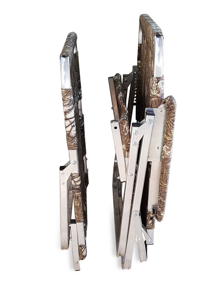 Кресло имеет 10 регулируемых положений спинки, перекладина под коленями отсутствует (как на кресле №6) - отличный вариант для зимней рыбалки.