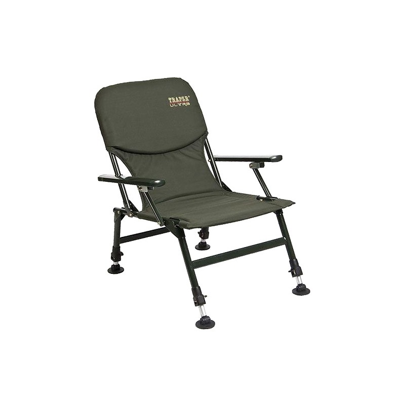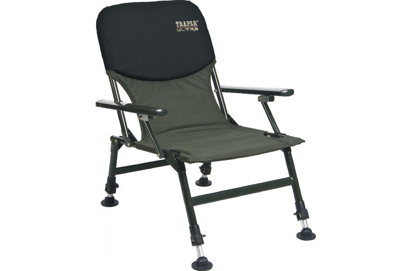 Кресло карповое складное Traper Ultra с подлокотниками - Кресло снабжено ножками, регулирующимися по высоте, что позволяет установить его на неровной местности. Изготовлено на базе лёгкого алюминиевого каркаса. Рекомендуется для фидеристов и карпятников.Отличное сочетание цены и комфорта.