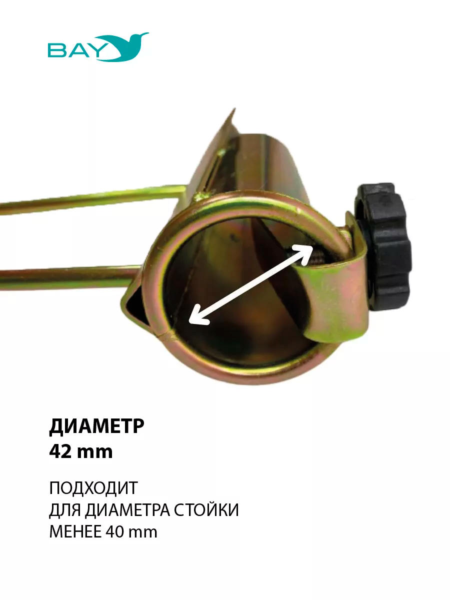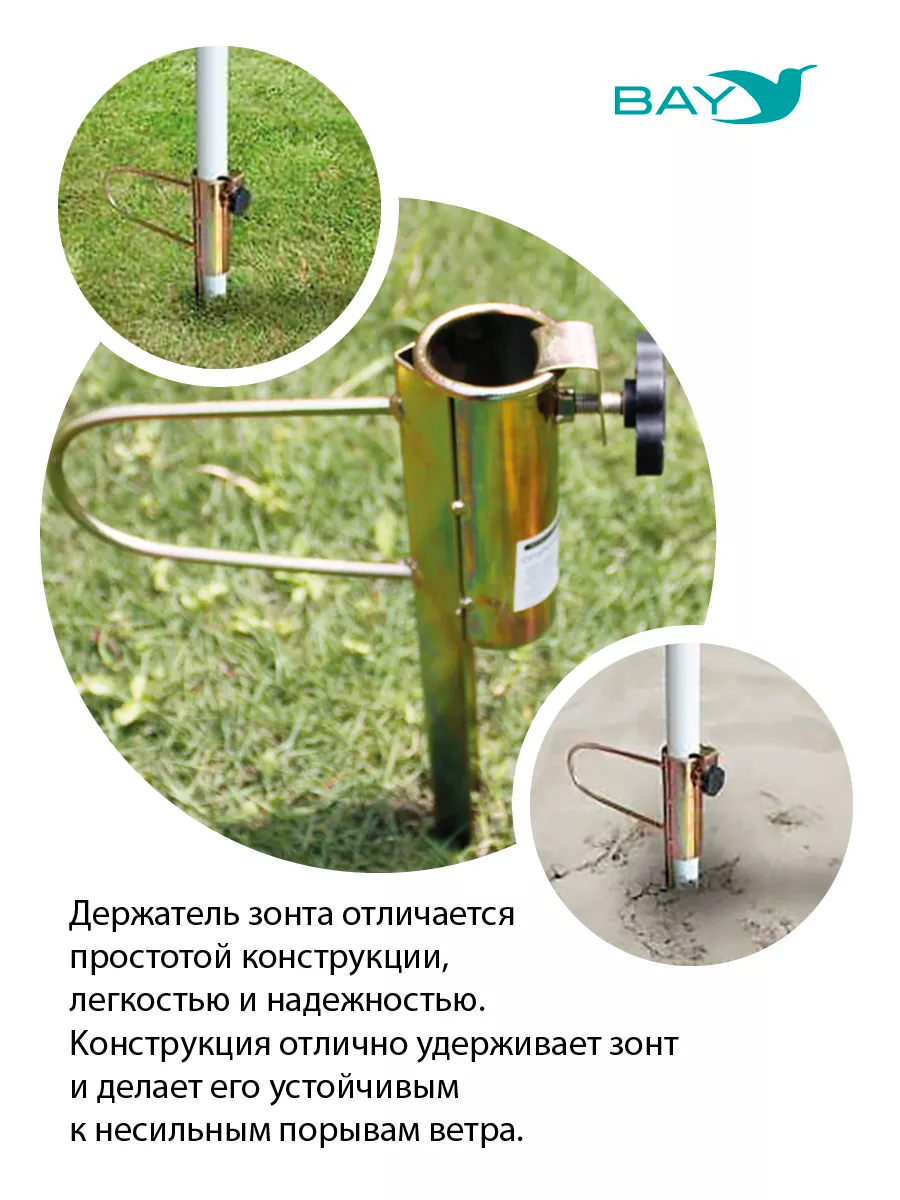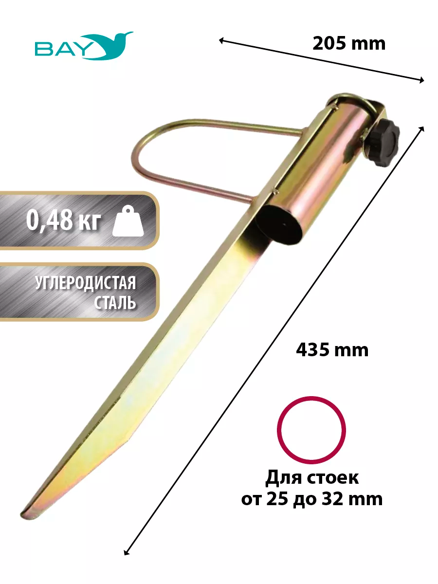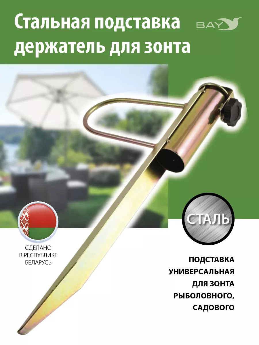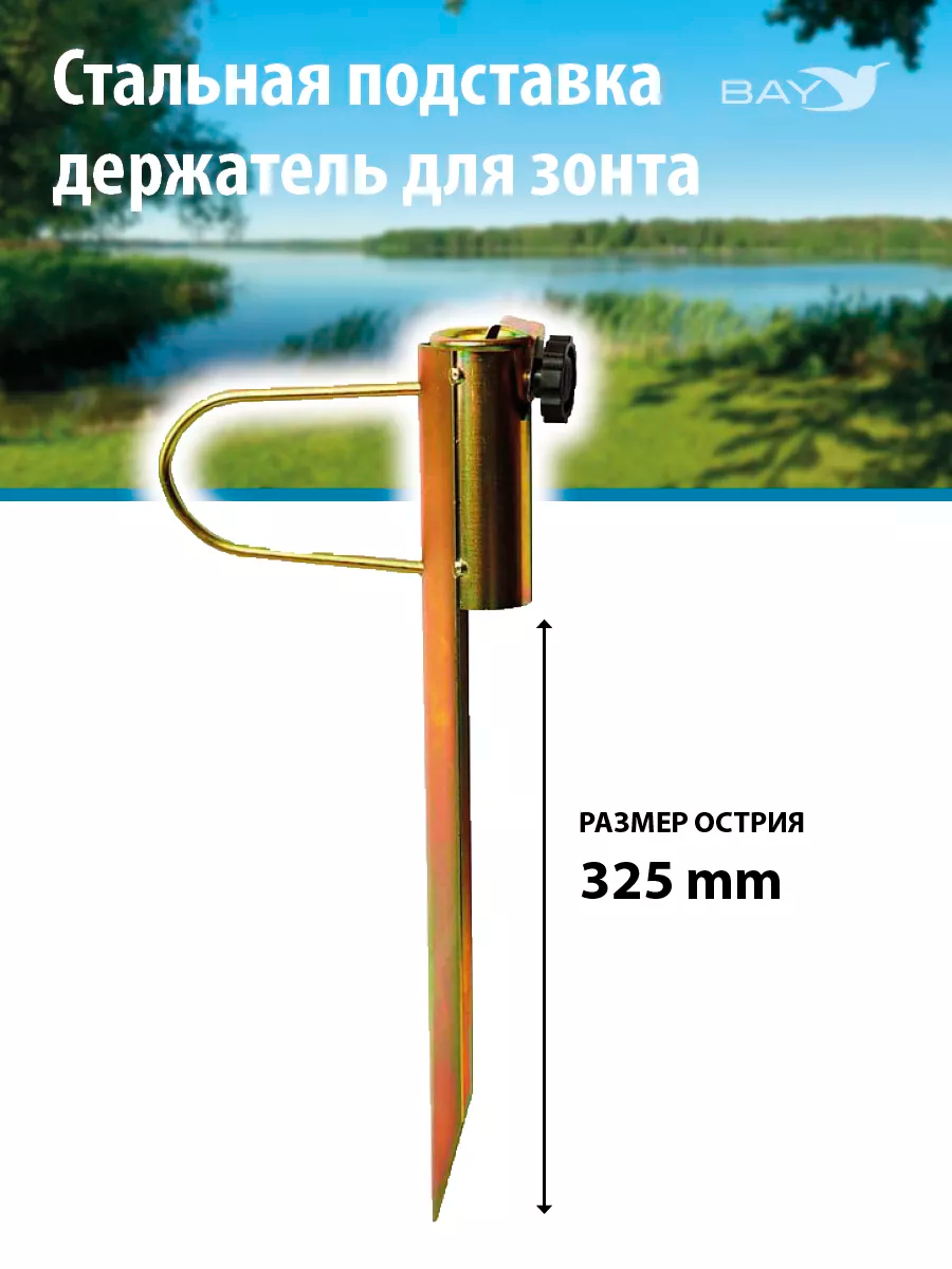 Универсальное кепление штырь для зонта. Держатель зонта выполнен из металла, отличается простотой конструкции, легкостью и надежностью. Аксессуар предоставляет возможность быстро и надежно произвести крепление зонта на плотном грунте. Такая конструкция отлично удерживает зонт и делает его устойчивым к несильным порывам ветра. Подставка для зонта из стали – это надежная и прочная опора для садовых зонтов, незаменимая в различных поездках, на пикниках, на пляже, в кемпинге. Она используется с целью установки зонта на ровной поверхности. Подставка для зонта BAY обладает небольшим размером и ее всегда удобно брать с собой. Подходит для стоек 25-32 мм. Для стоек 25-32 см. Размер: 43,5х20,5х5 см. Вес нетто: 0,48 кг. Материал: сталь. Аксессуар для зонта пляж рыбалка кемпинг. Просто быстро удобно эргономично. Штырь держатель подставка установка зонта.