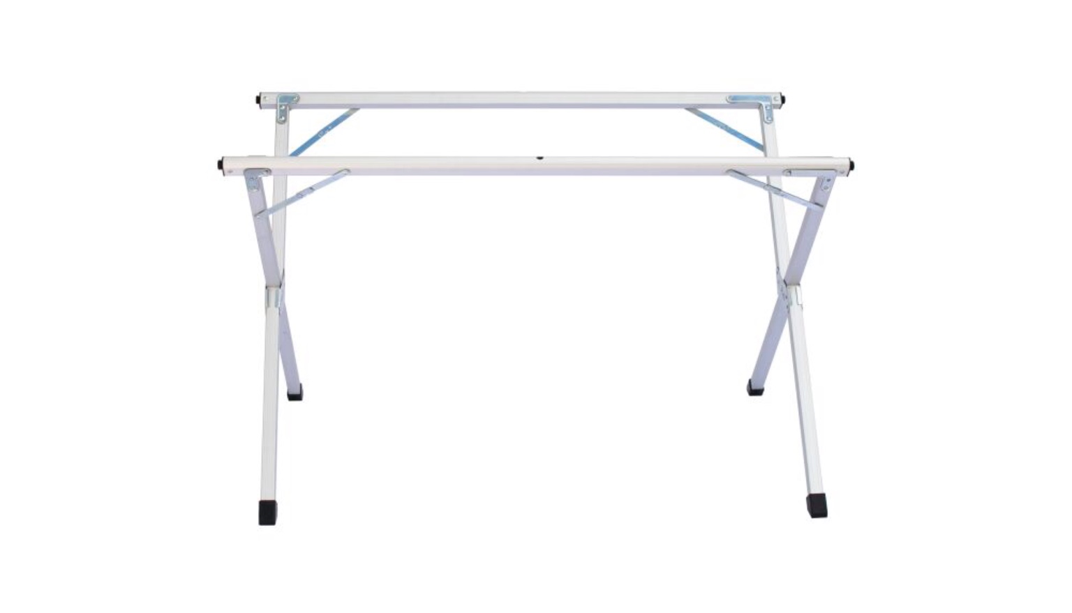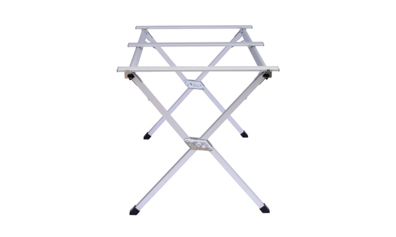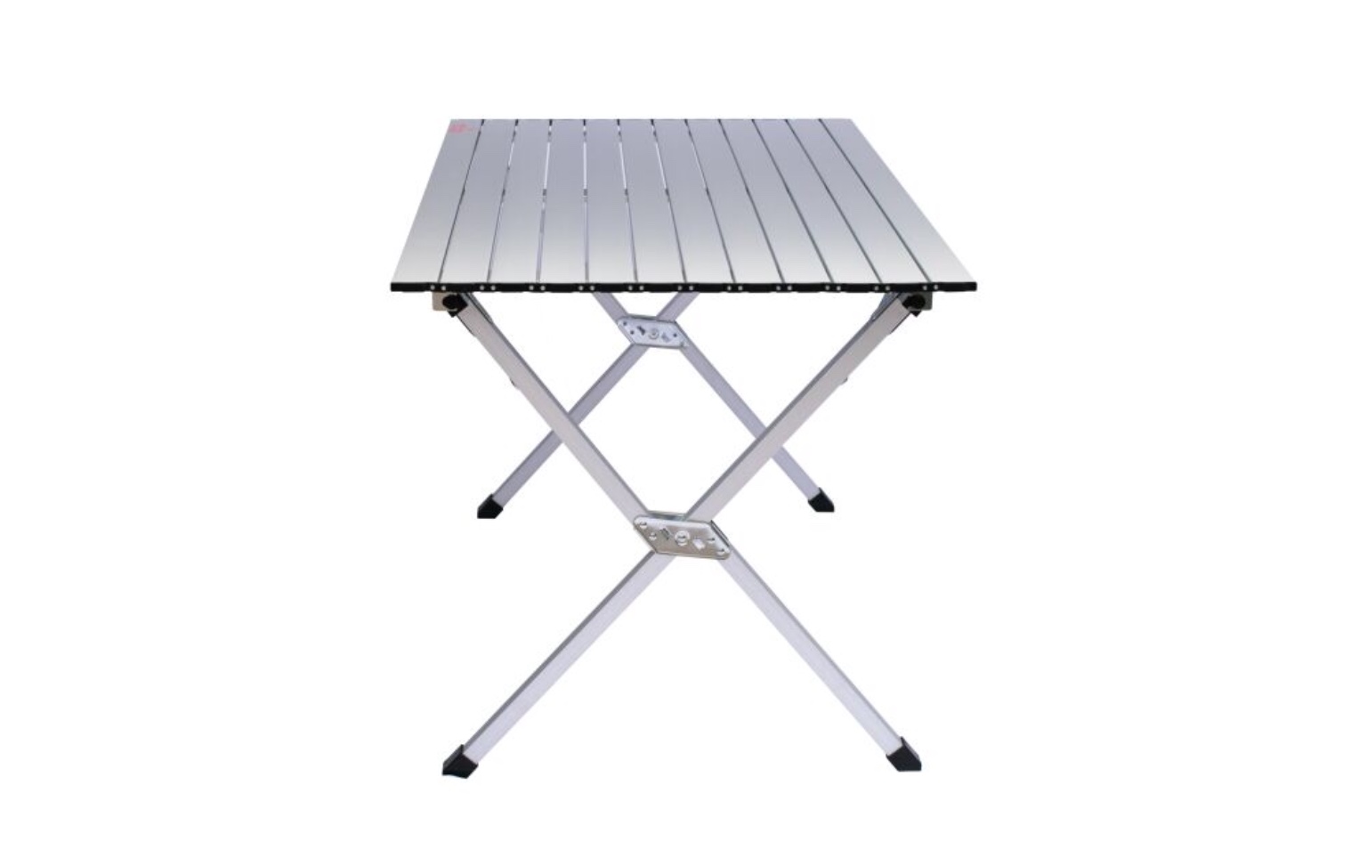 Складывающаяся «гармошкой» столешница и складной каркас столика выполнены из легкого и прочного алюминия .