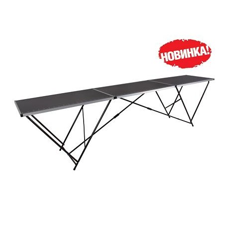 Черная поверхность столешницы. Тканевый чехол.Повышенная устойчивость стола. Тканевый чехол защищает от царапин при перевозке и хранении. Легко складывается, переносится и занимает мало места при хранении. Идеален для загородного отдыха больших компаний, ремонта – наклеивания обоев.