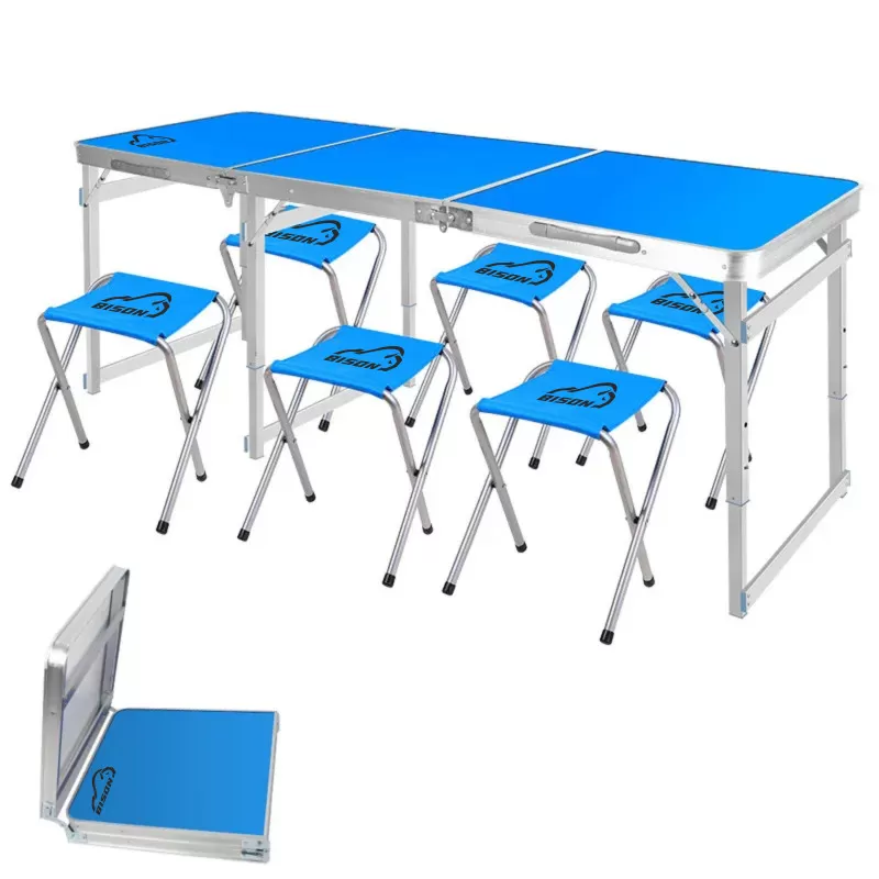 СТОЛ ТУРИСТИЧЕСКИЙ УСИЛЕННЫЙ BISON 60*180СМ (СИНИЙ)+ 6 СТУЛЬЕВ / С-6-60*180