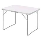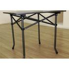 Столешница из ламинированной фанеры толщиной 6 мм, стойки из алюминиевой трубки диаметром 18 мм.