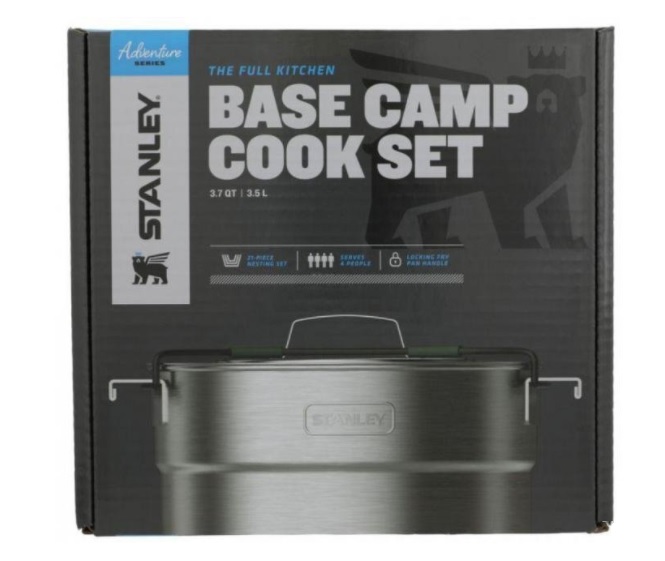 Набор STANLEY Adventure состоит из 21 предмета, которые складываются один в другой, занимая минимум места в багаже. В комплект входят: кастрюля – 3,5л, крышка с отверстием для пара, сковорода c трехслойным стальным антипригарным покрытием со складной ручкой – 0,96л, разделочная доска, 4 ложки-вилки, 4 миски для первых блюд - 0,65л, 4 тарелки для вторых блюд - 15.2см, жаростойкая шумовка и половник из полиамида с удлиняющимися ручками, подставка для горячего, замок с запирающей системой для компактного хранения.