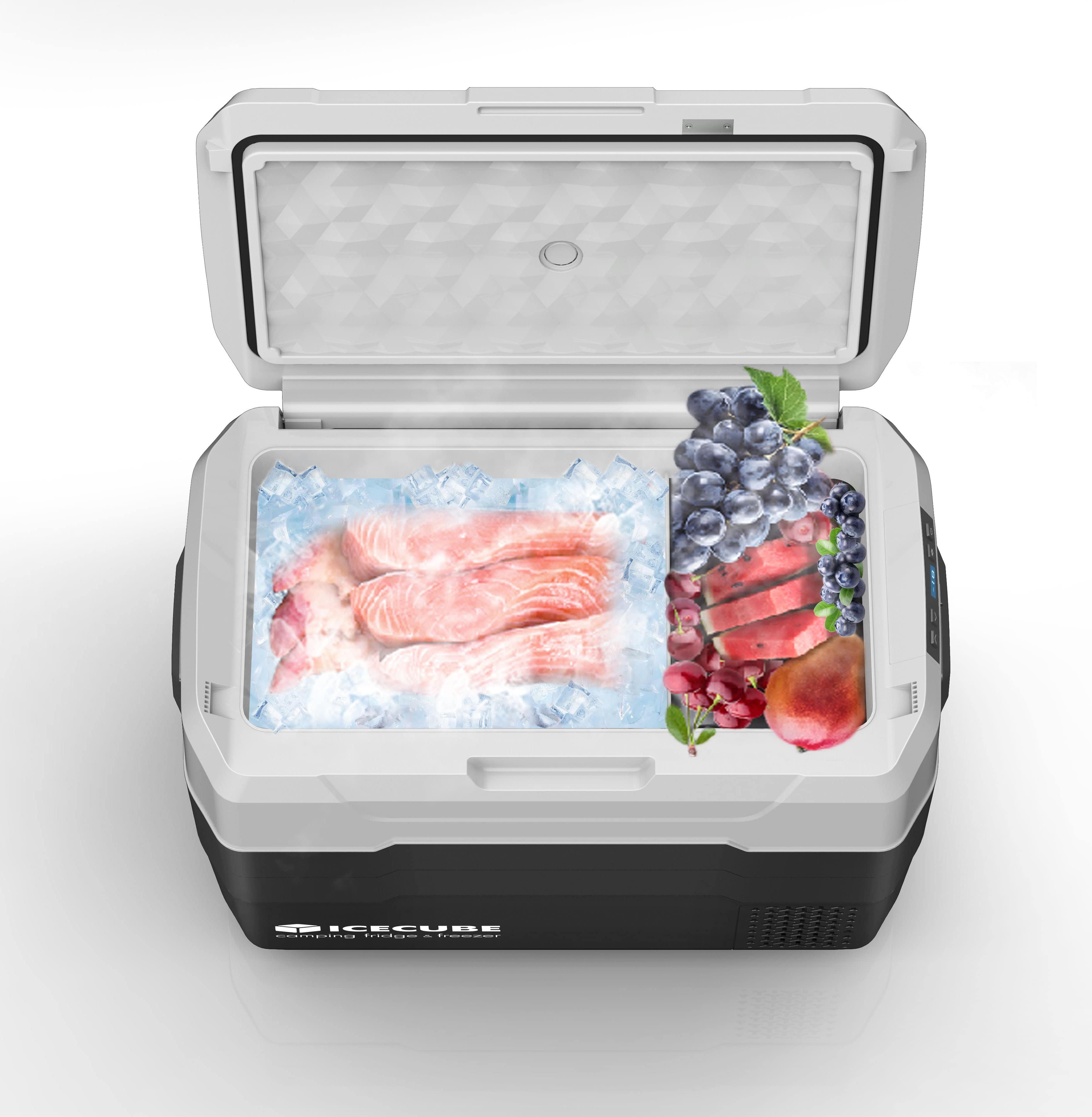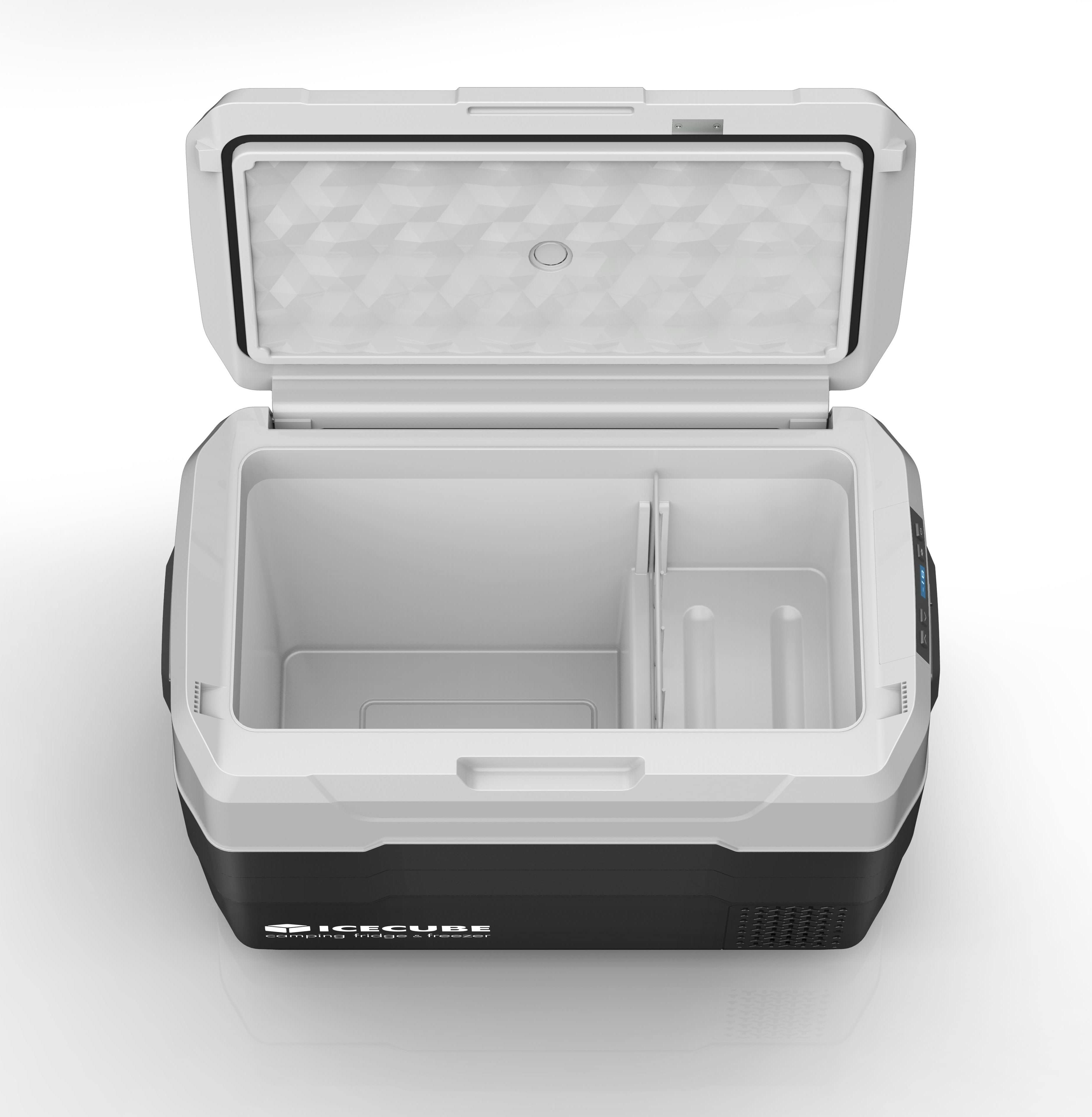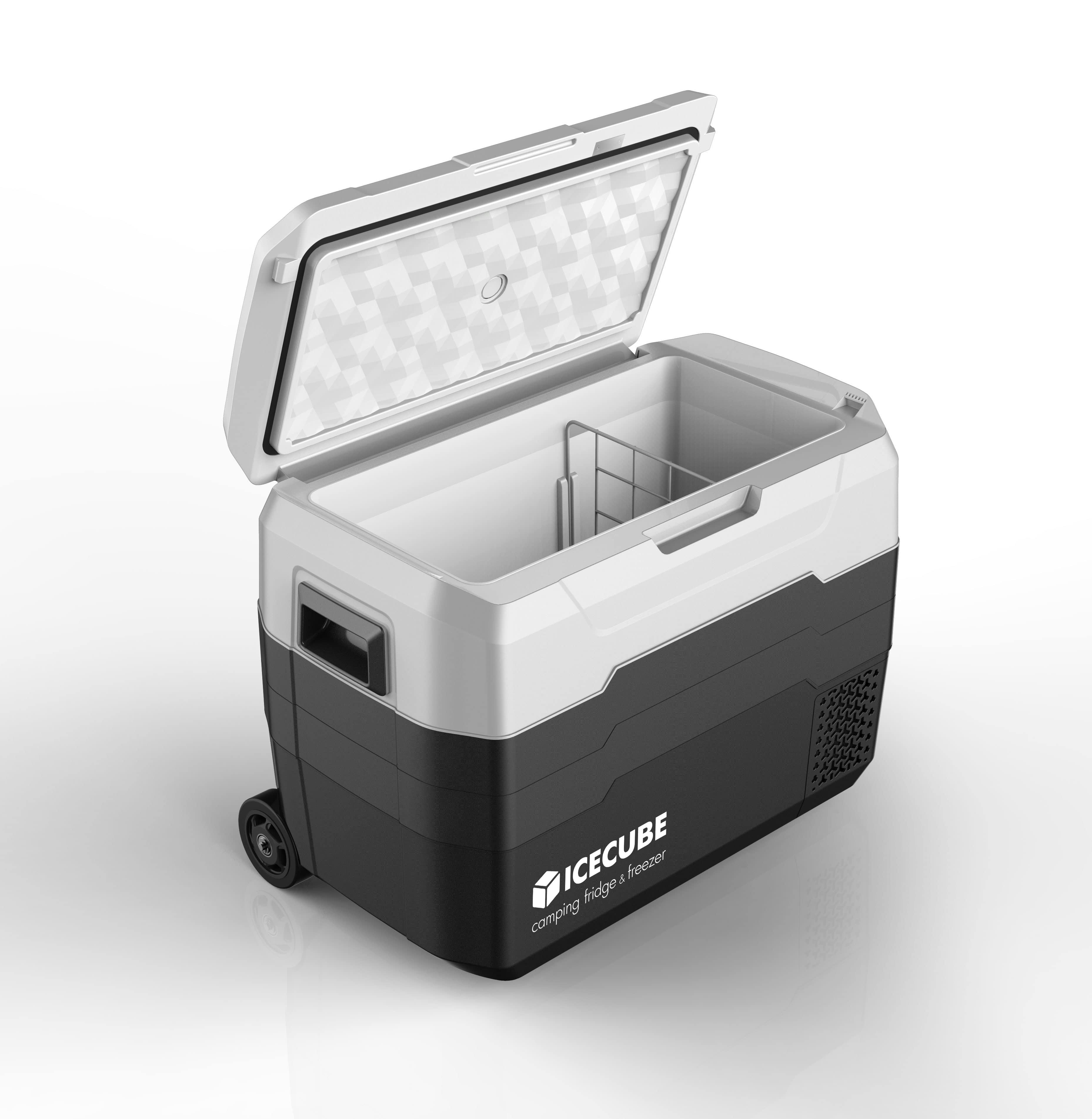 Компрессорный автохолодильник ICE CUBE IC42 на 40 литров выполнен из прочного пластика, можно использовать в условиях езды по неровным дорогам, при углах наклона до 30 градусов. Данная модель питается от бортовой сети автомобиля, и также может быть подключена к сети 220В через адаптер. Имеет функцию защиты аккумулятора автомобиля от разрядки, а также предохранитель, защищающий от скачков напряжения сети.