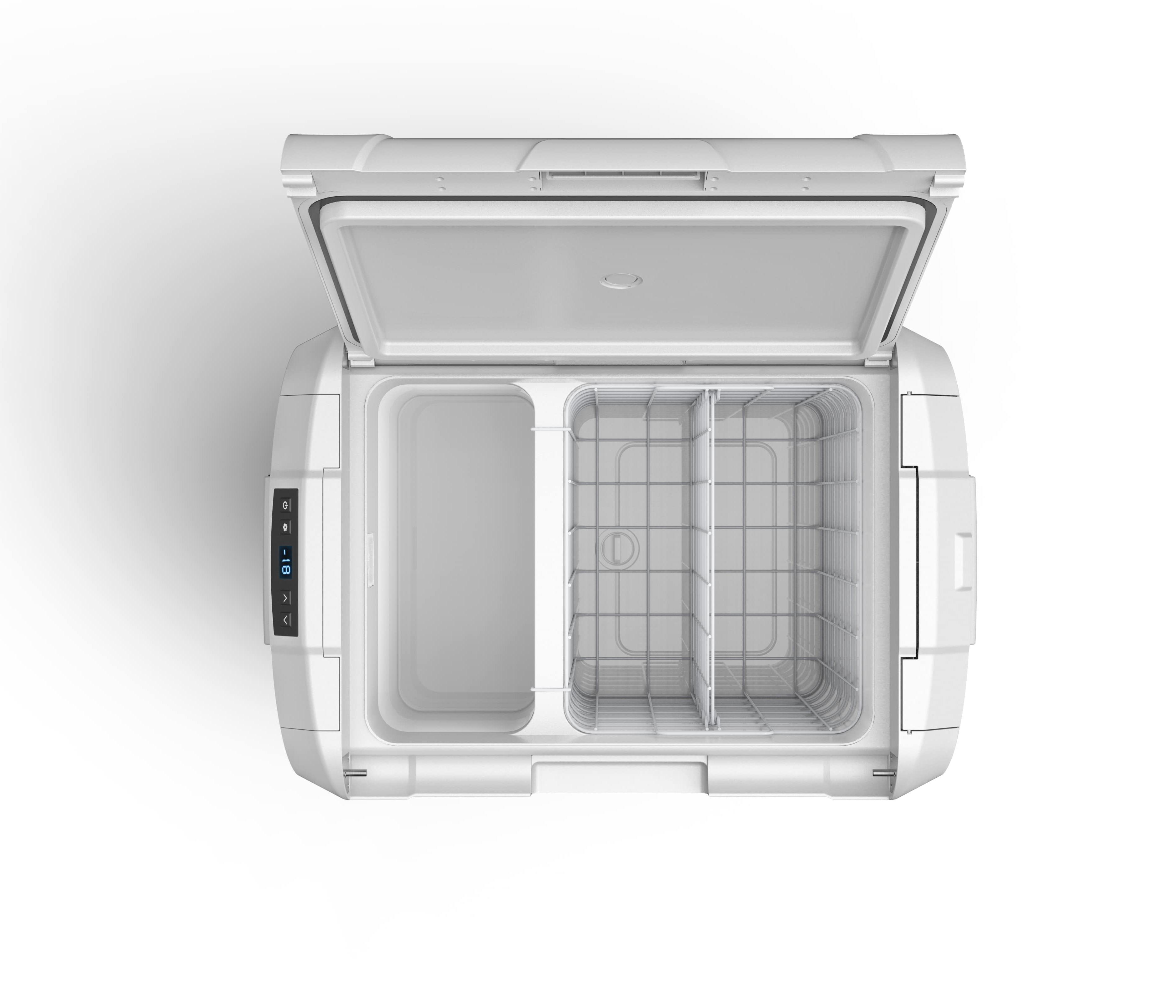 - Специальная конструкция крышки позволяет открывать ее на любую сторону, а также снимать ее для удобного доступа к продуктам в невысоких багажниках.