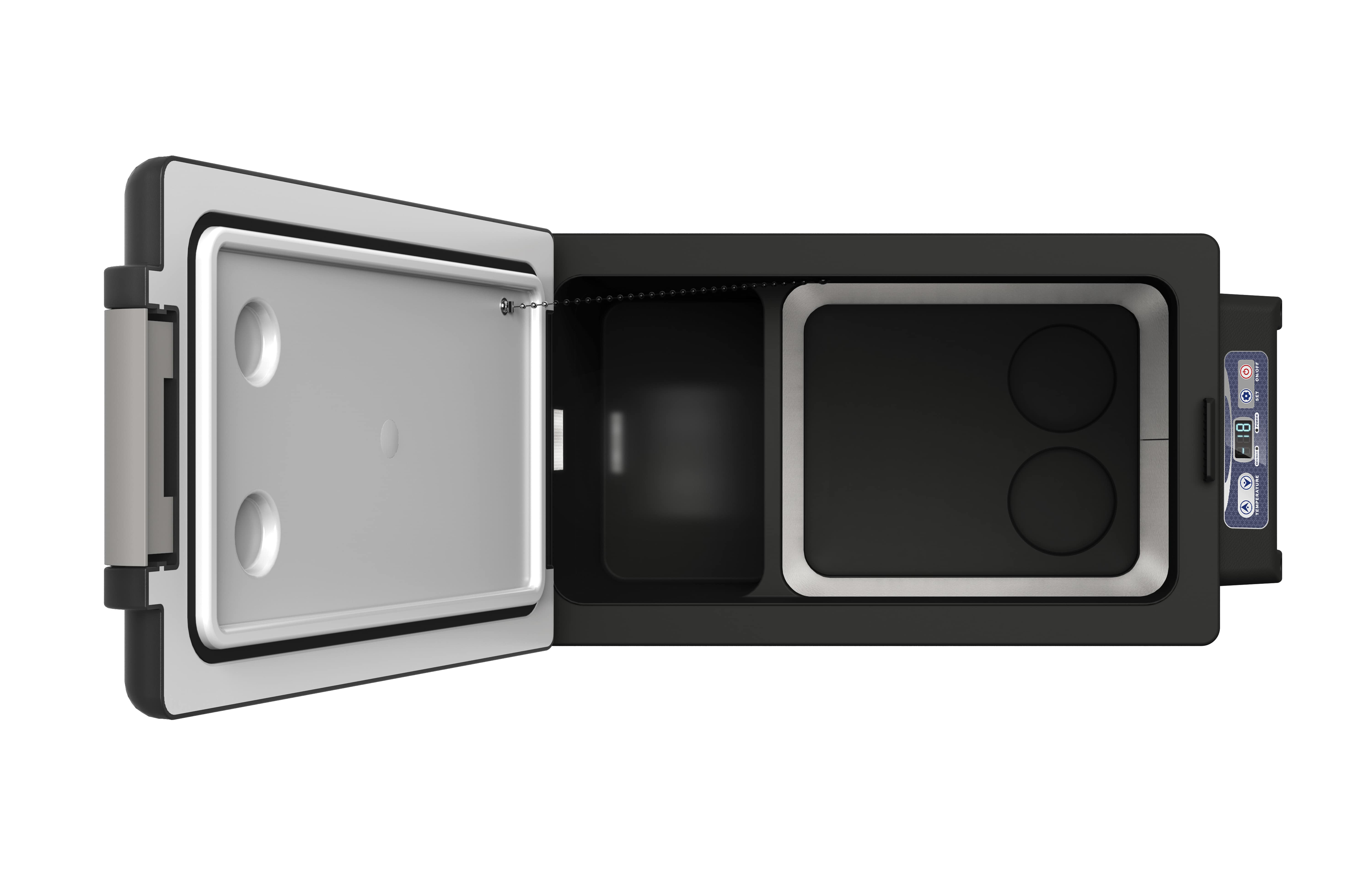 Автохолодильник ICE CUBE "Внедорожная классика" на 49 литров оснащен надежным и энергоэффективным компрессором немецкого производства, который выдерживает интенсивные вибрации и даже сильные наклоны корпуса устройства. Специальная конструкция крышки позволяет открывать ее в любую из сторон, а отсек для мелочей позволяет полезные мелкие предметы всегда под рукой.