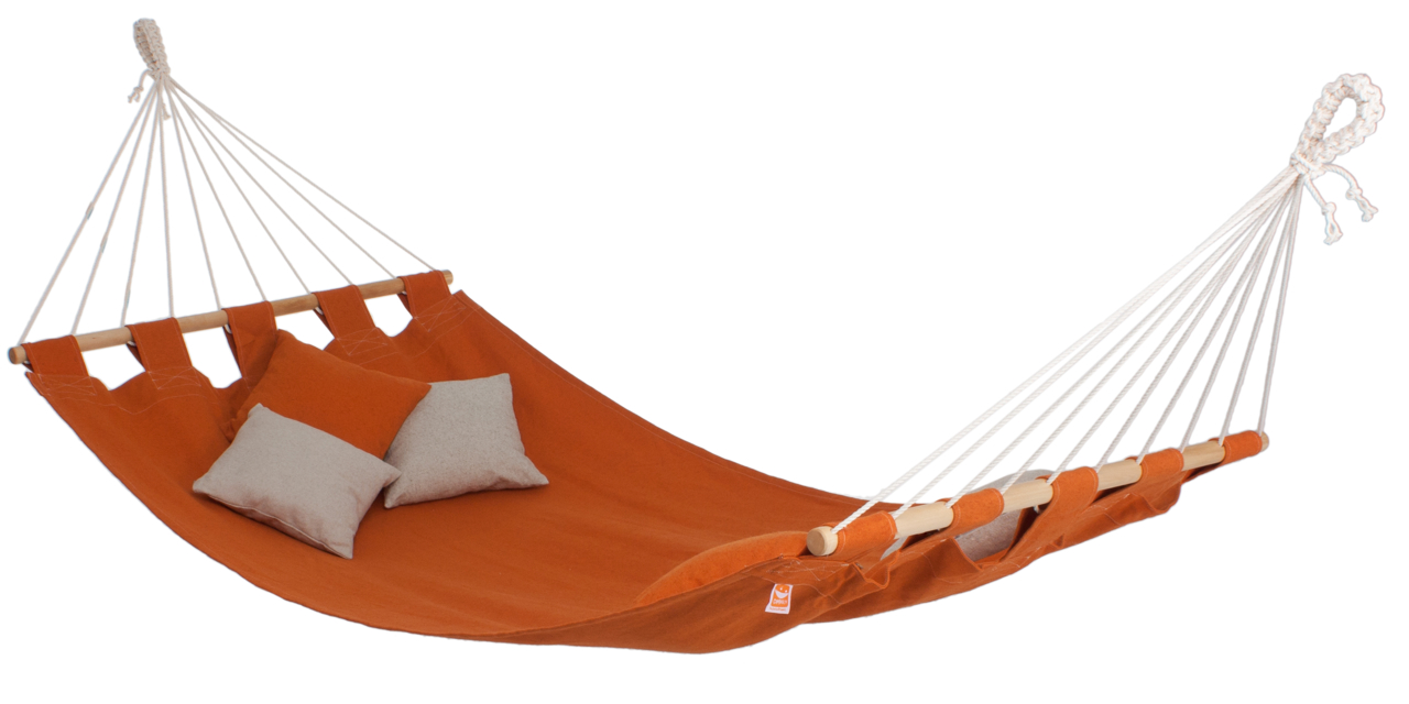 Этот вариант наиболее подходящий для принятия солнечных ванн и любителей погреться на солнышке: бруски создают определённую центровку, поэтому свойства покачивания данного гамака приносят приятные весёлые мгновения. А повышенная прочность позволяет насладиться ощущениями вдвоём.