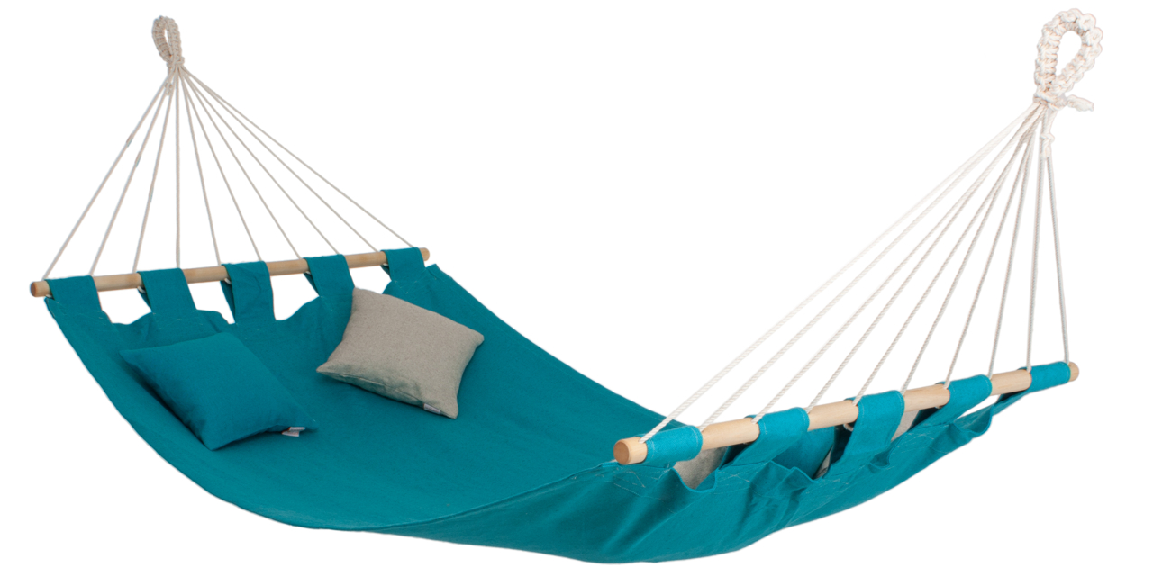 Этот вариант наиболее подходящий для принятия солнечных ванн и любителей погреться на солнышке: бруски создают определённую центровку, поэтому свойства покачивания данного гамака приносят приятные весёлые мгновения. А повышенная прочность позволяет насладиться ощущениями вдвоём.