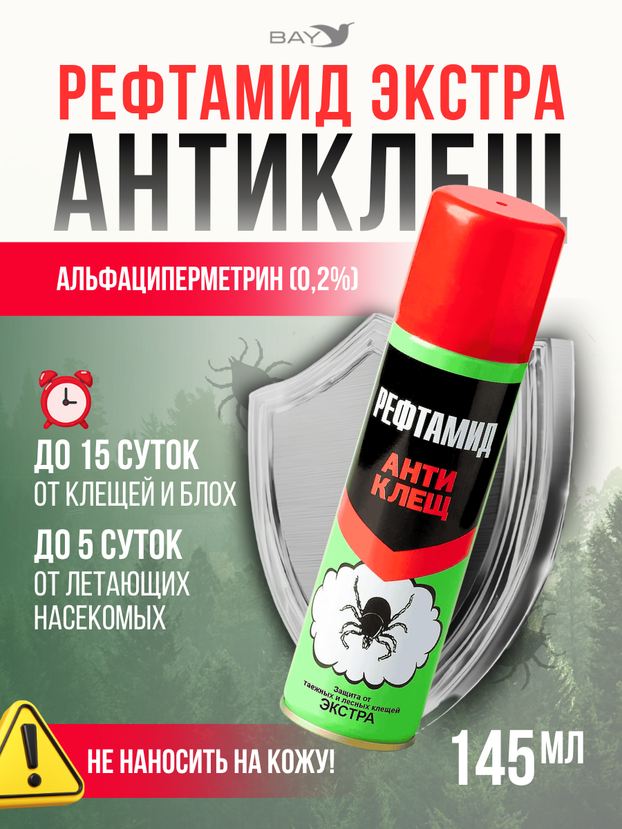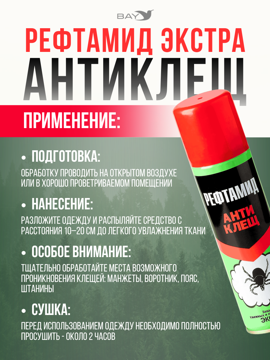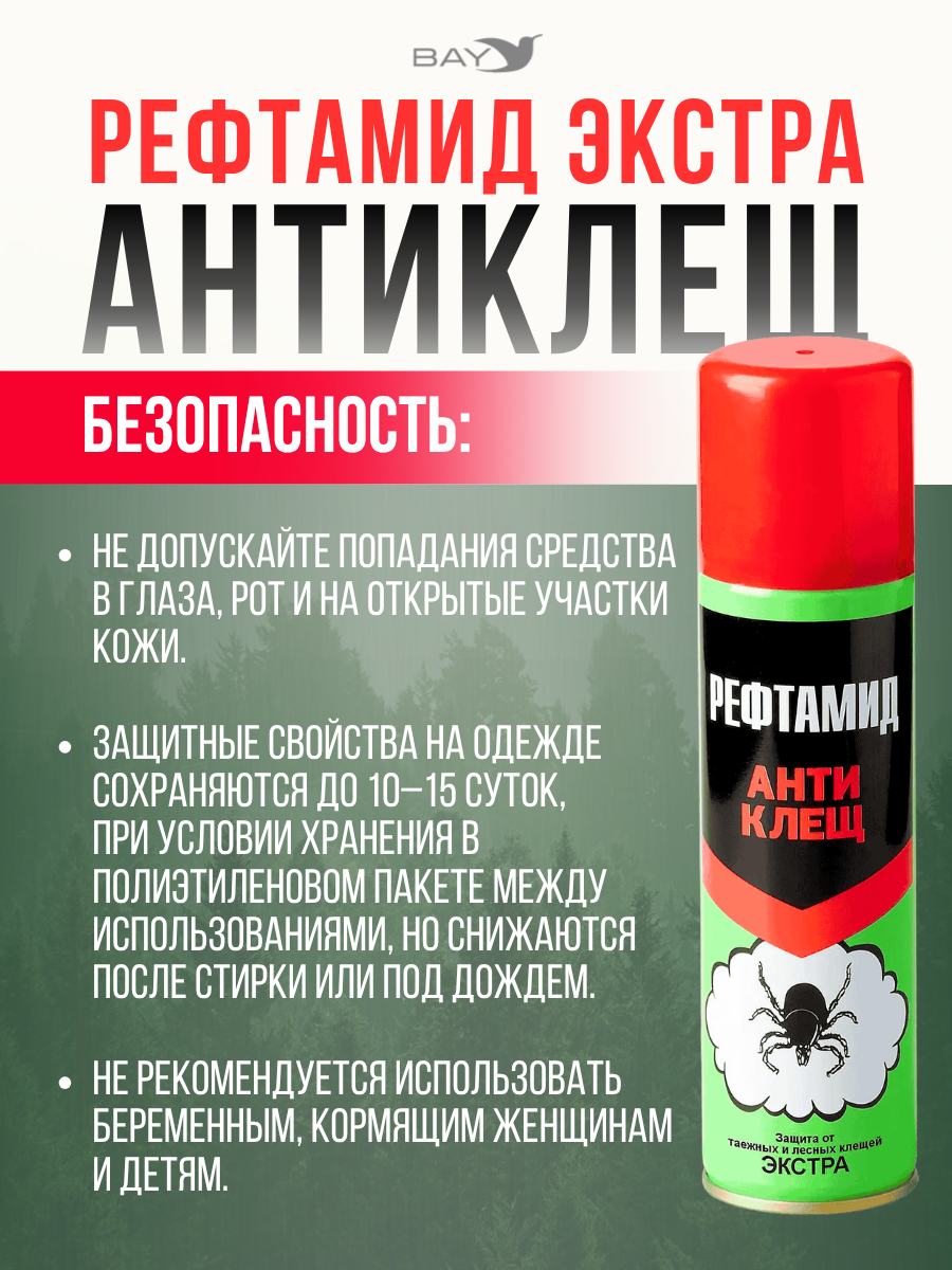 «Рефтамид Экстра Антиклещ» — средство для защиты от клещей, предназначенное для использования на открытом воздухе.